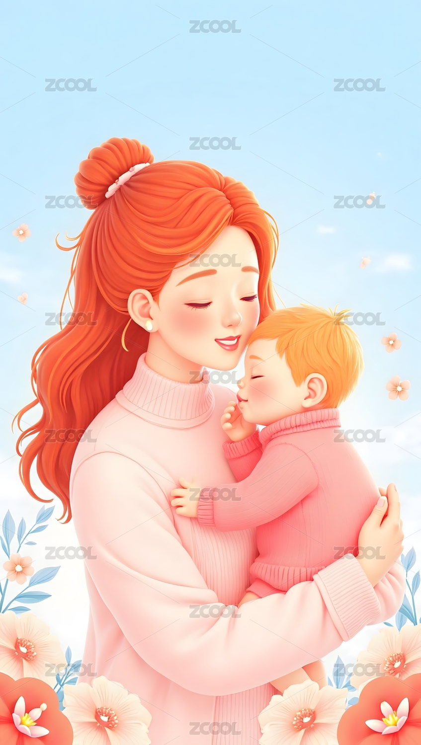母子节日插画