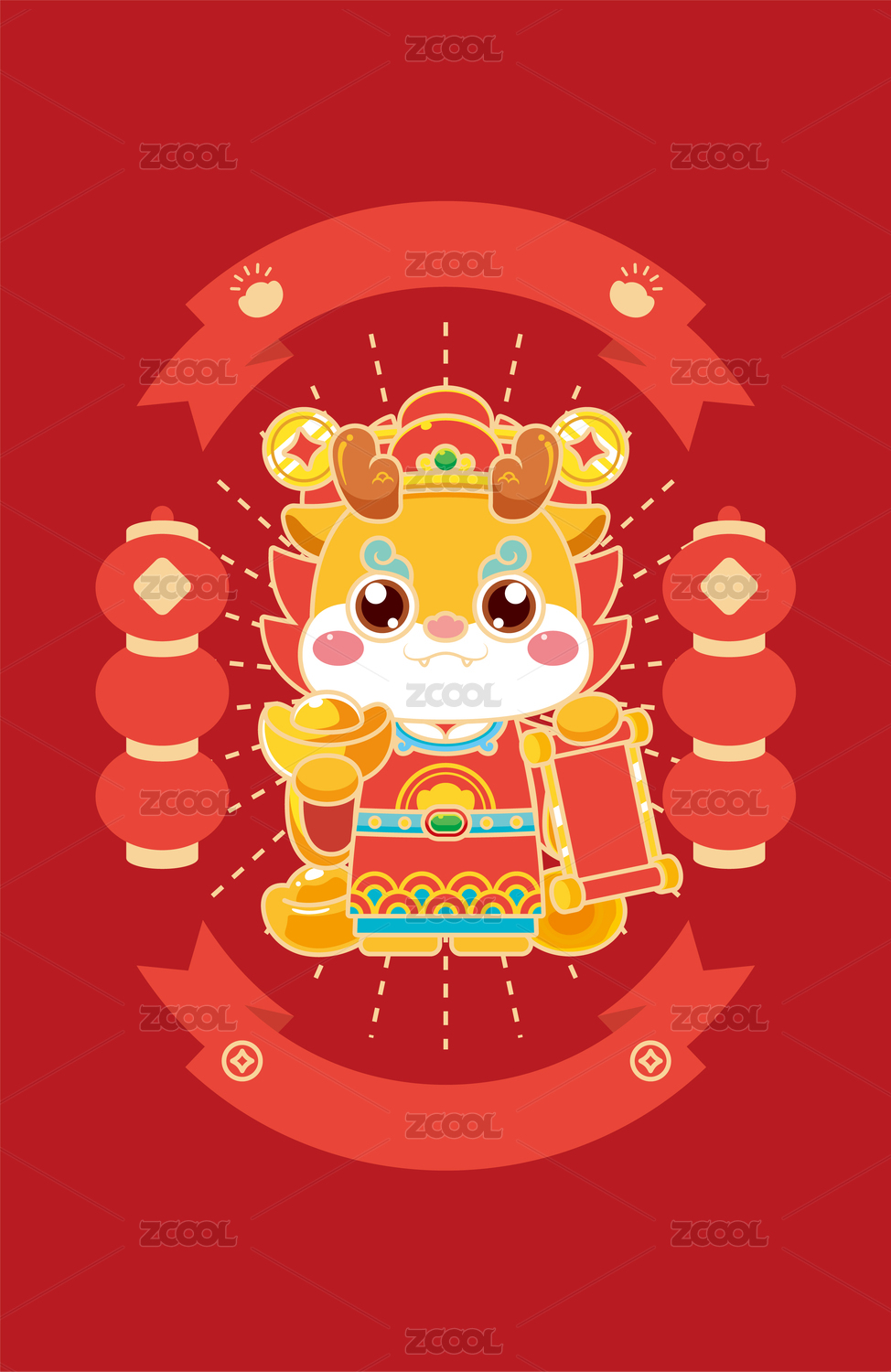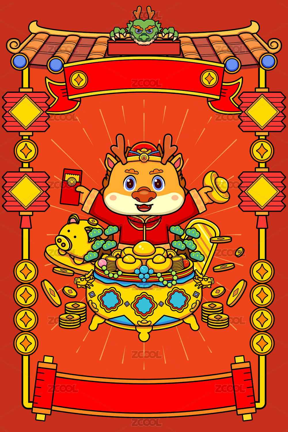 插画,春节,庆祝,新年,卡通,红色,节日,传统,拜年,龙年