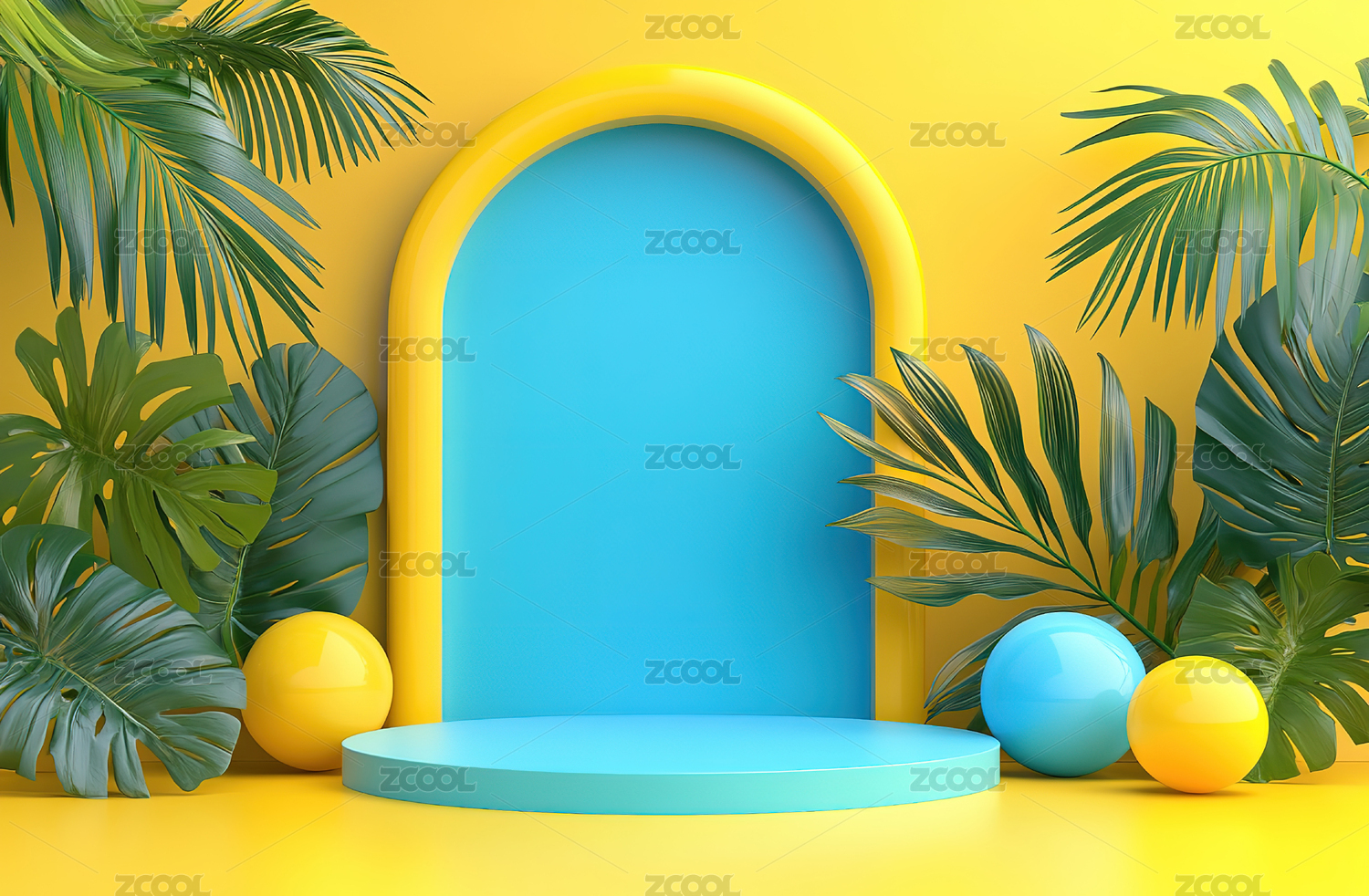 夏日阳光绿植圆形展示插画
