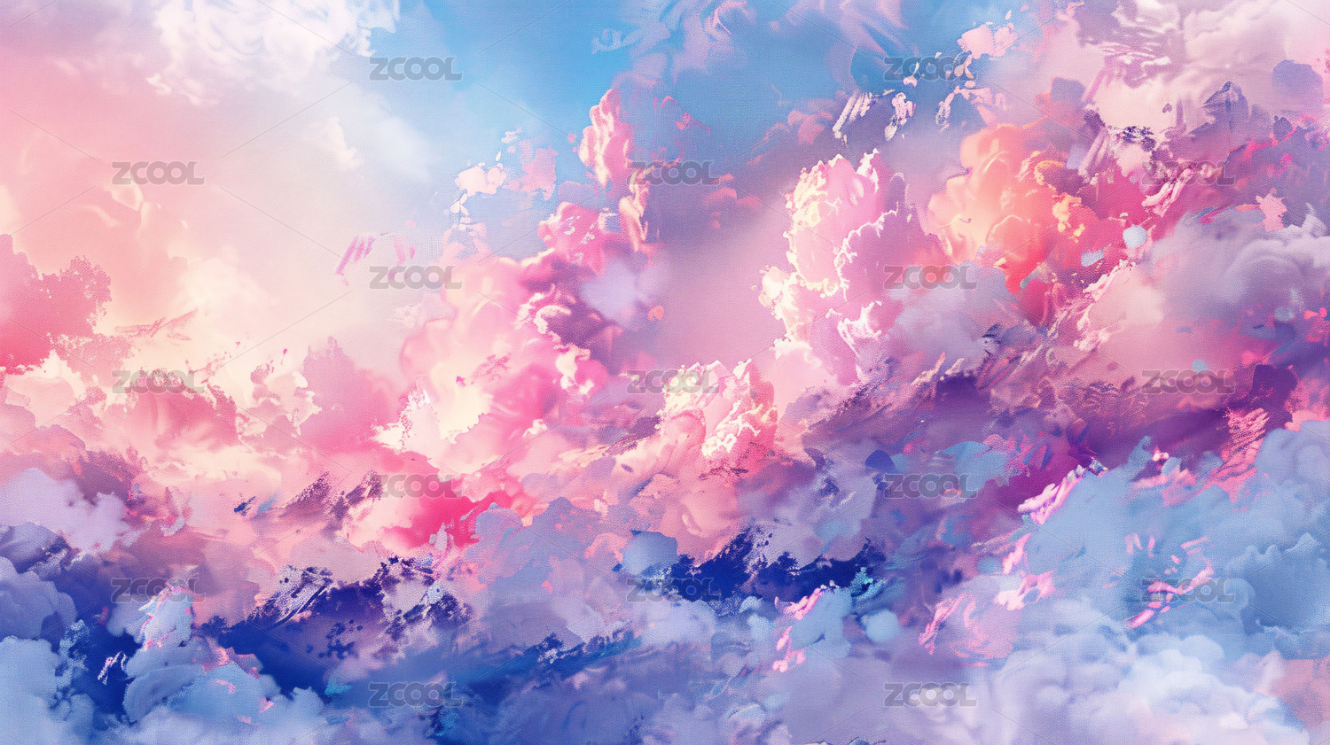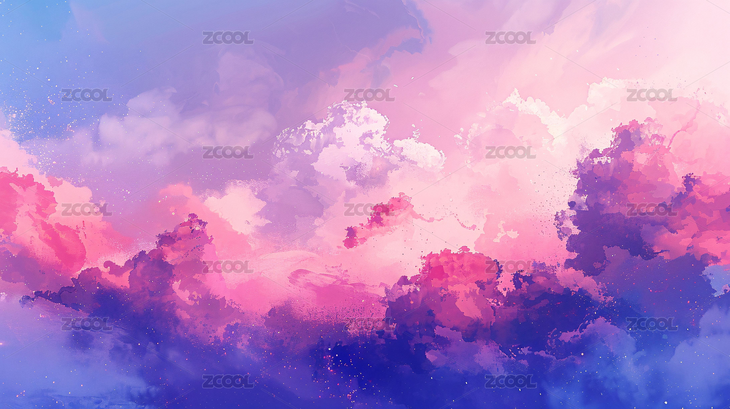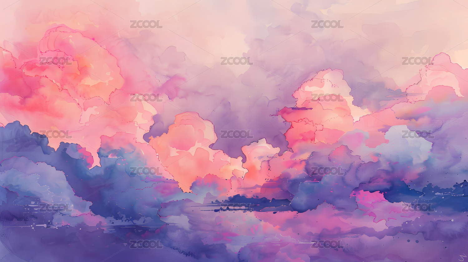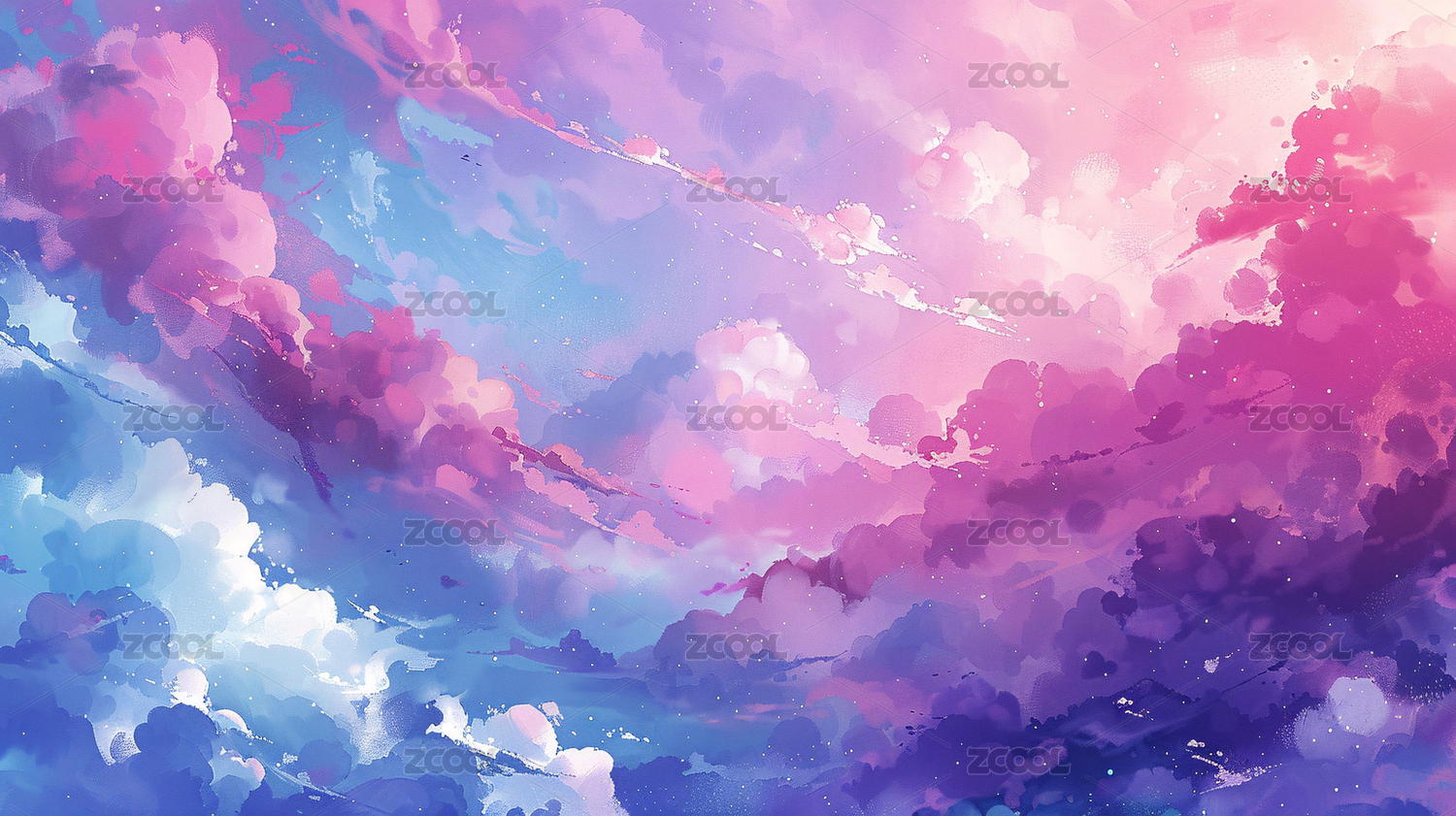 水彩风格抽象天空彩云PPT海报主视觉背景