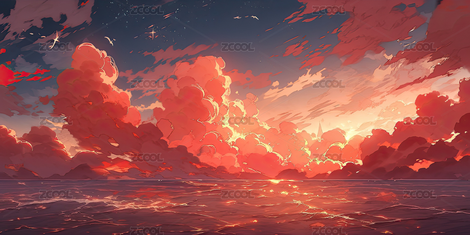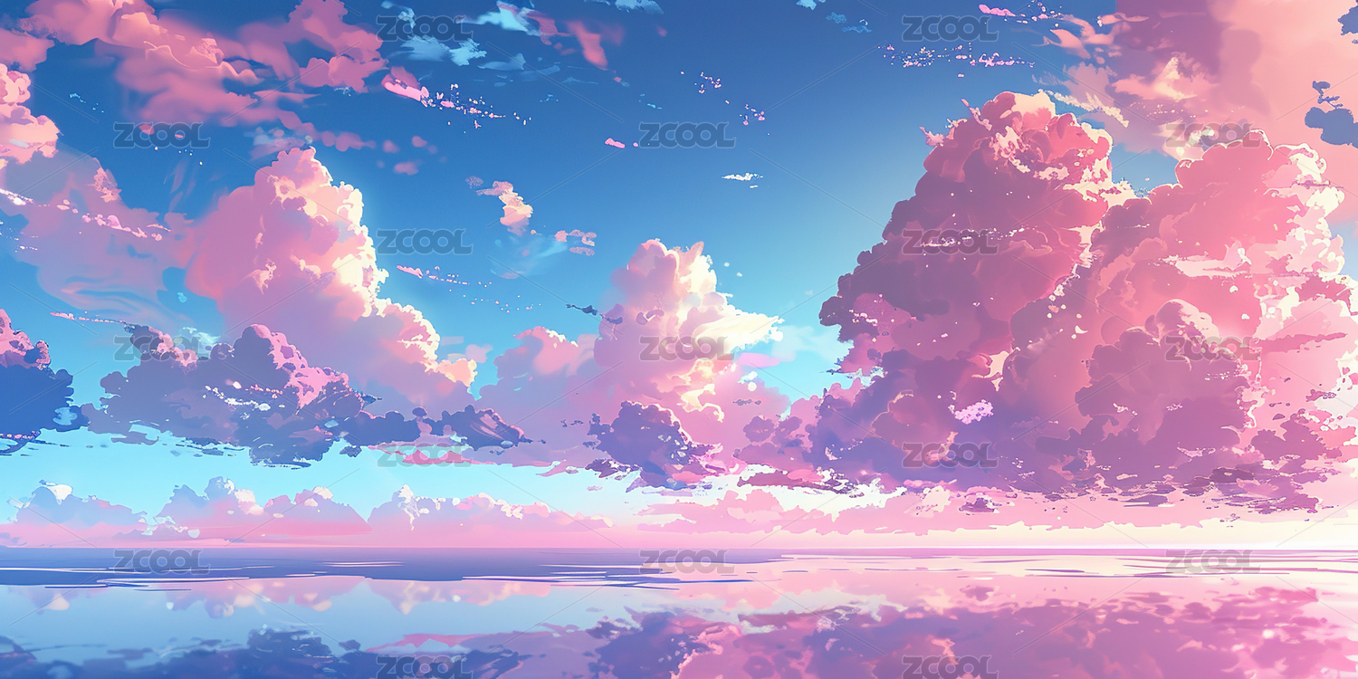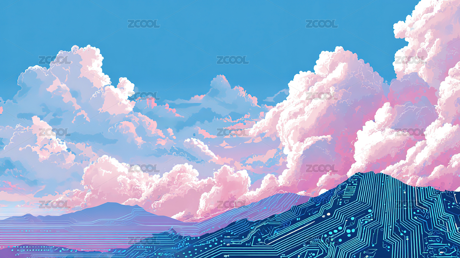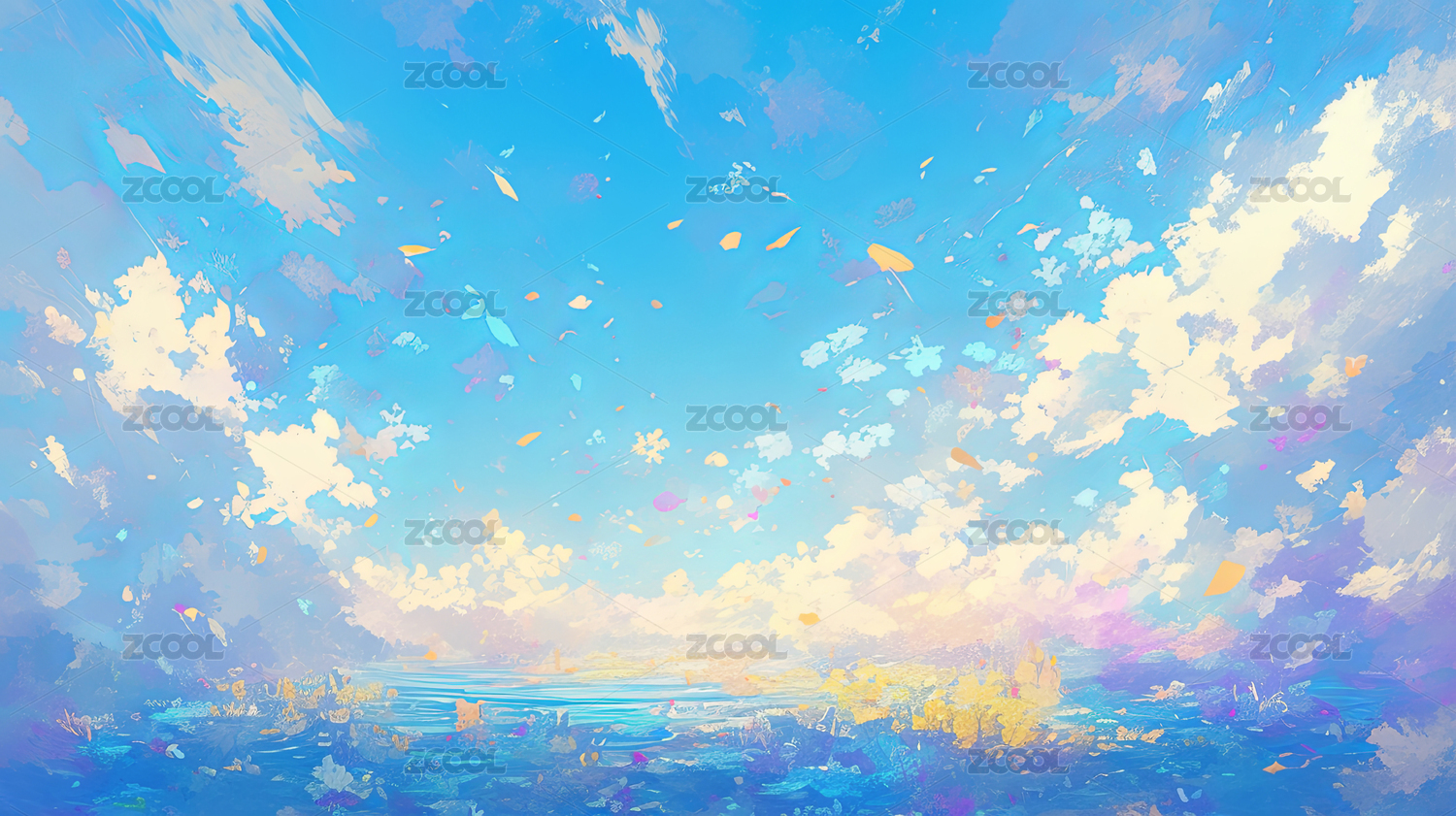 水彩风格抽象天空彩云PPT海报主视觉背景