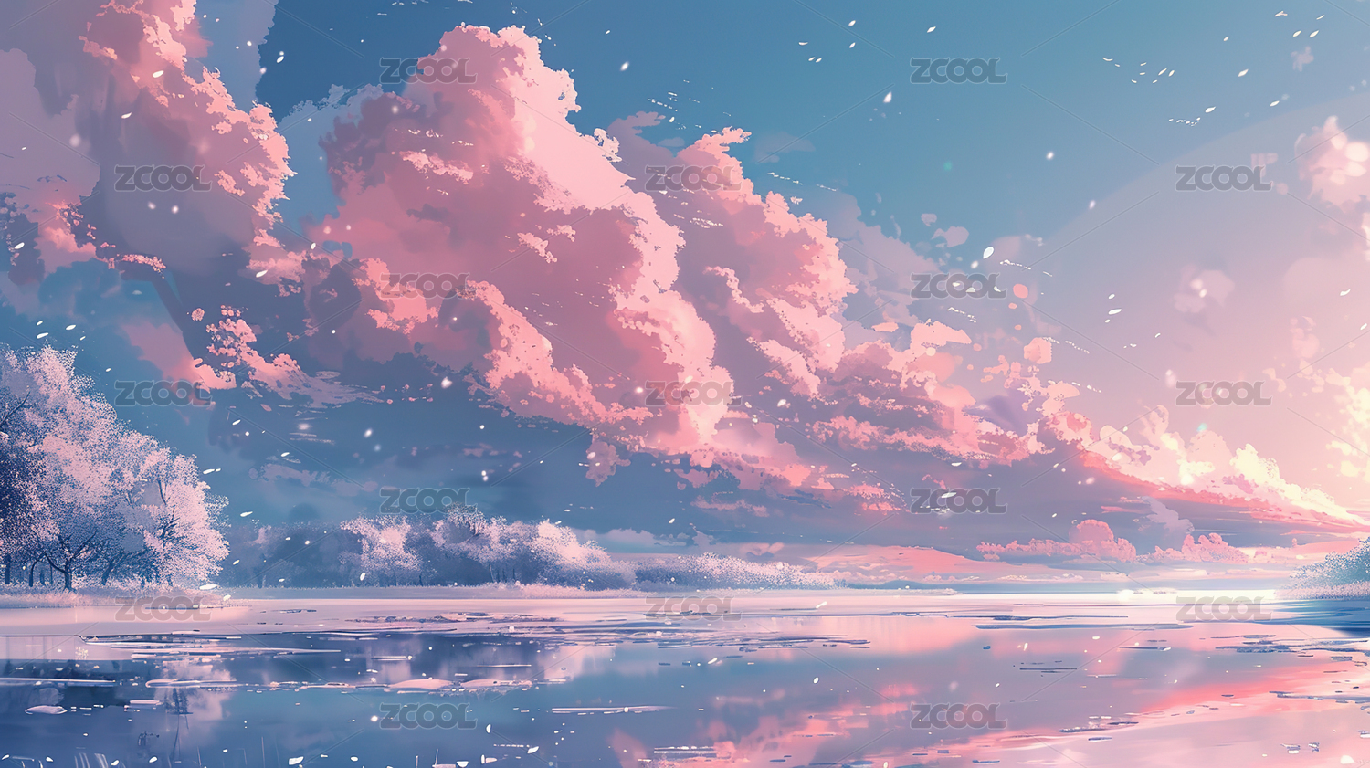 粉蓝交织的梦幻海洋,云雾缭绕的诗意画卷