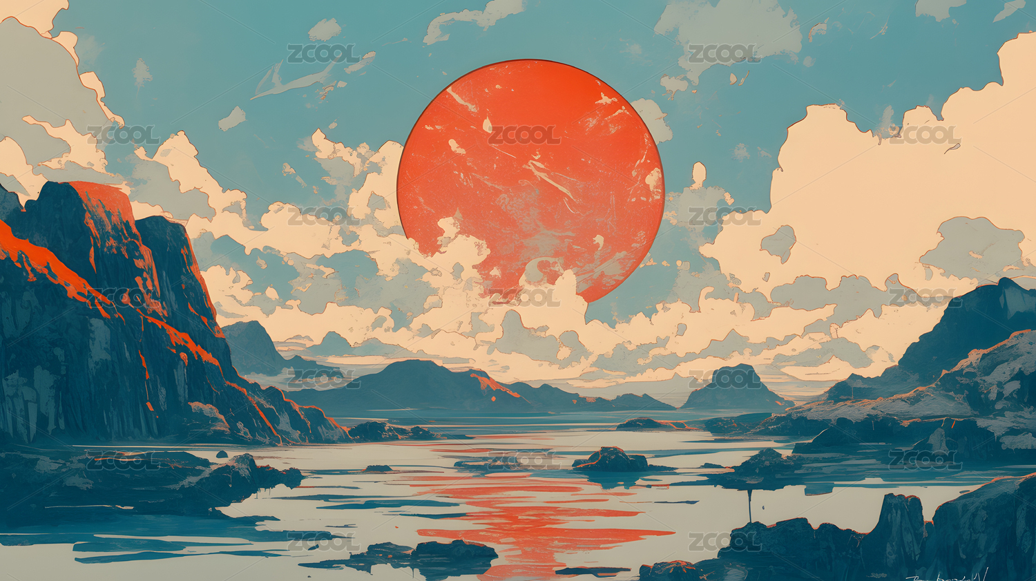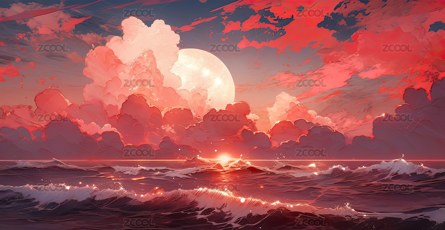 祥云波浪底纹国潮背景,中式传统海浪纹概念