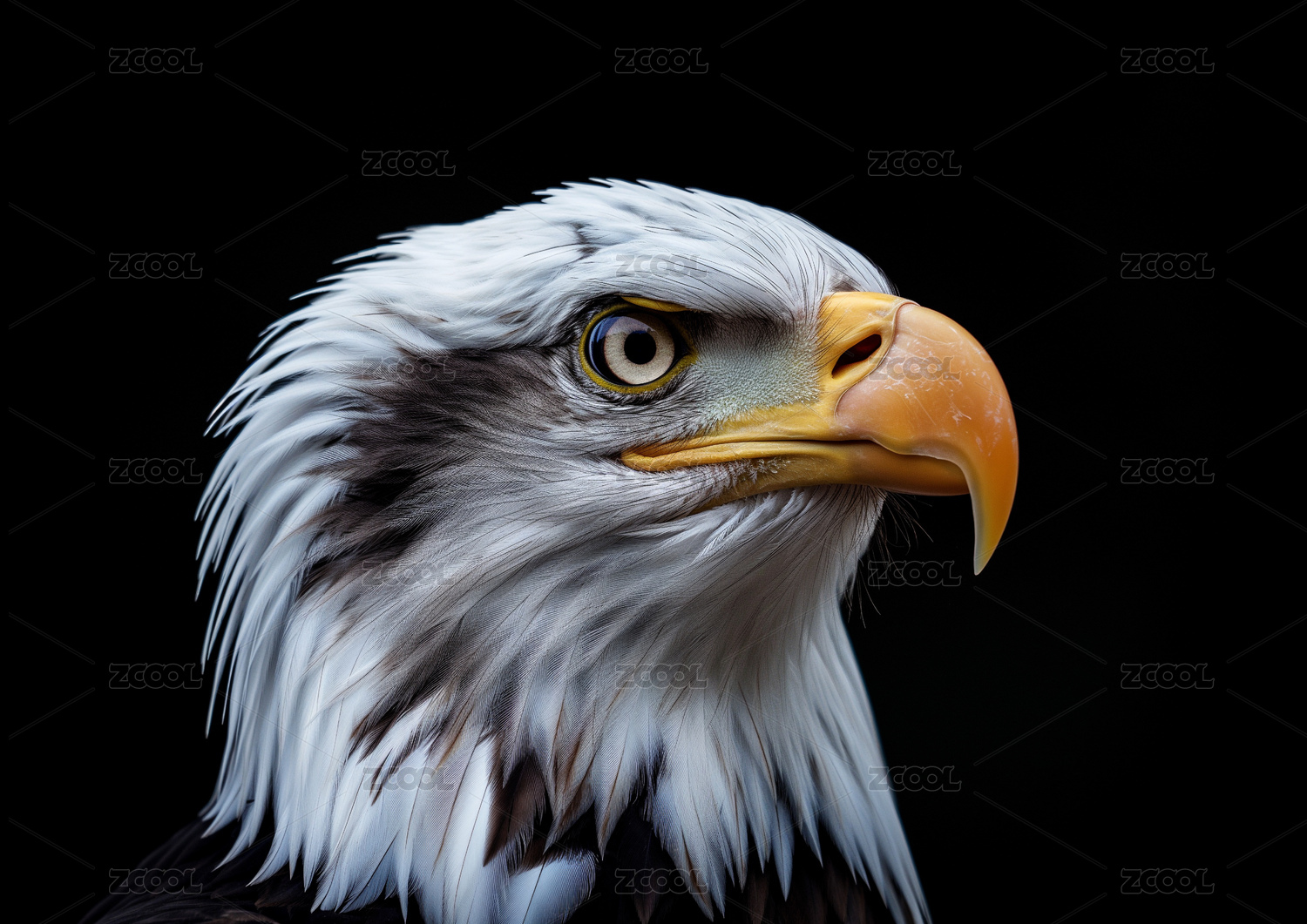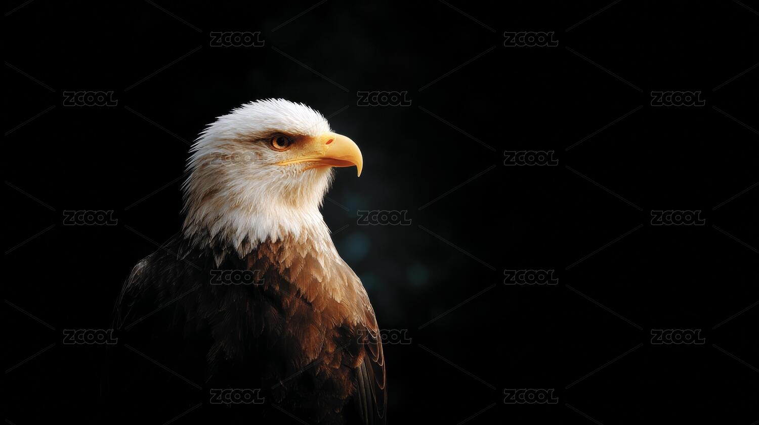 黑背景下雄姿勃勃的白头鹰
