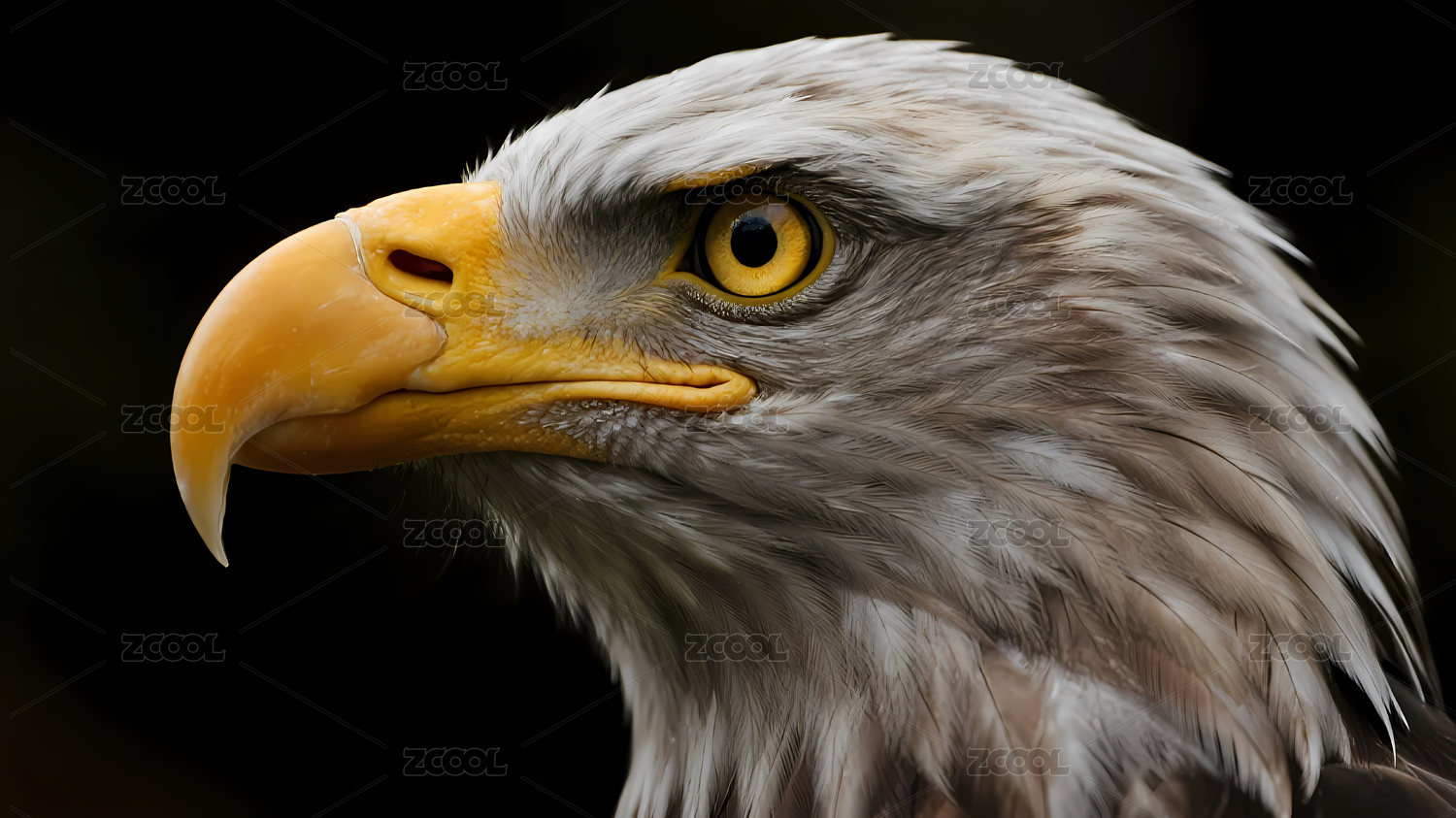 雄鹰头部黄色灰羽特写