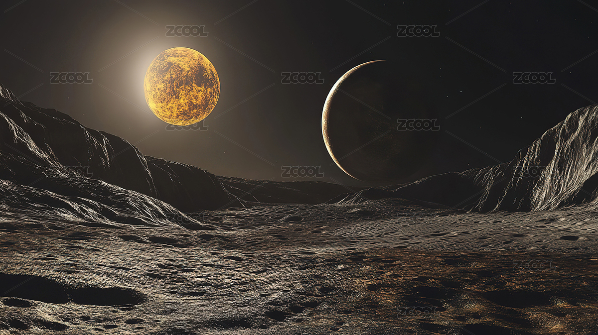 太空中星球凹凸的地面