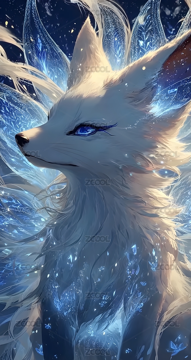 蓝辉中的白狐