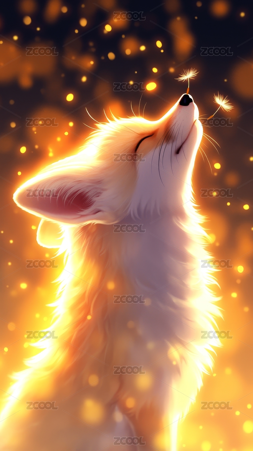 白狐仰望蒲公英