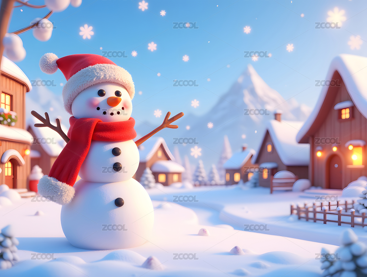 雪人,冬季,家庭,围巾,胡萝卜,雪景,窗户,橘子,树木,微笑