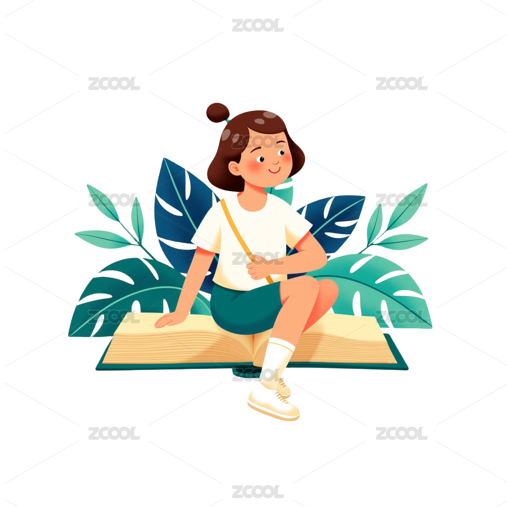少女,JK服,日系,小清新,小鸟,长凳,矢量