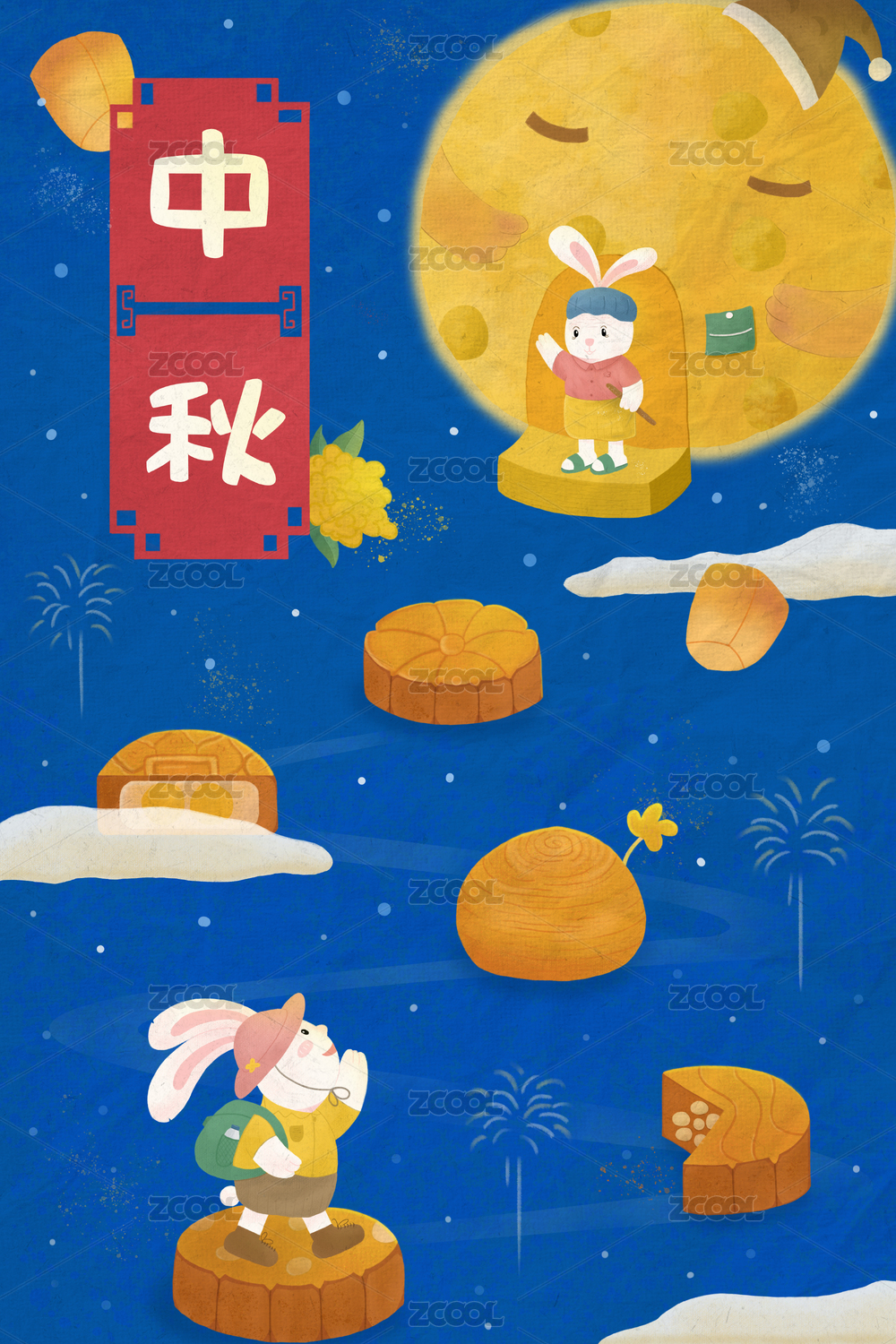 中秋节 月圆 嫦娥 玉兔 月饼 中秋 中秋矢量画
