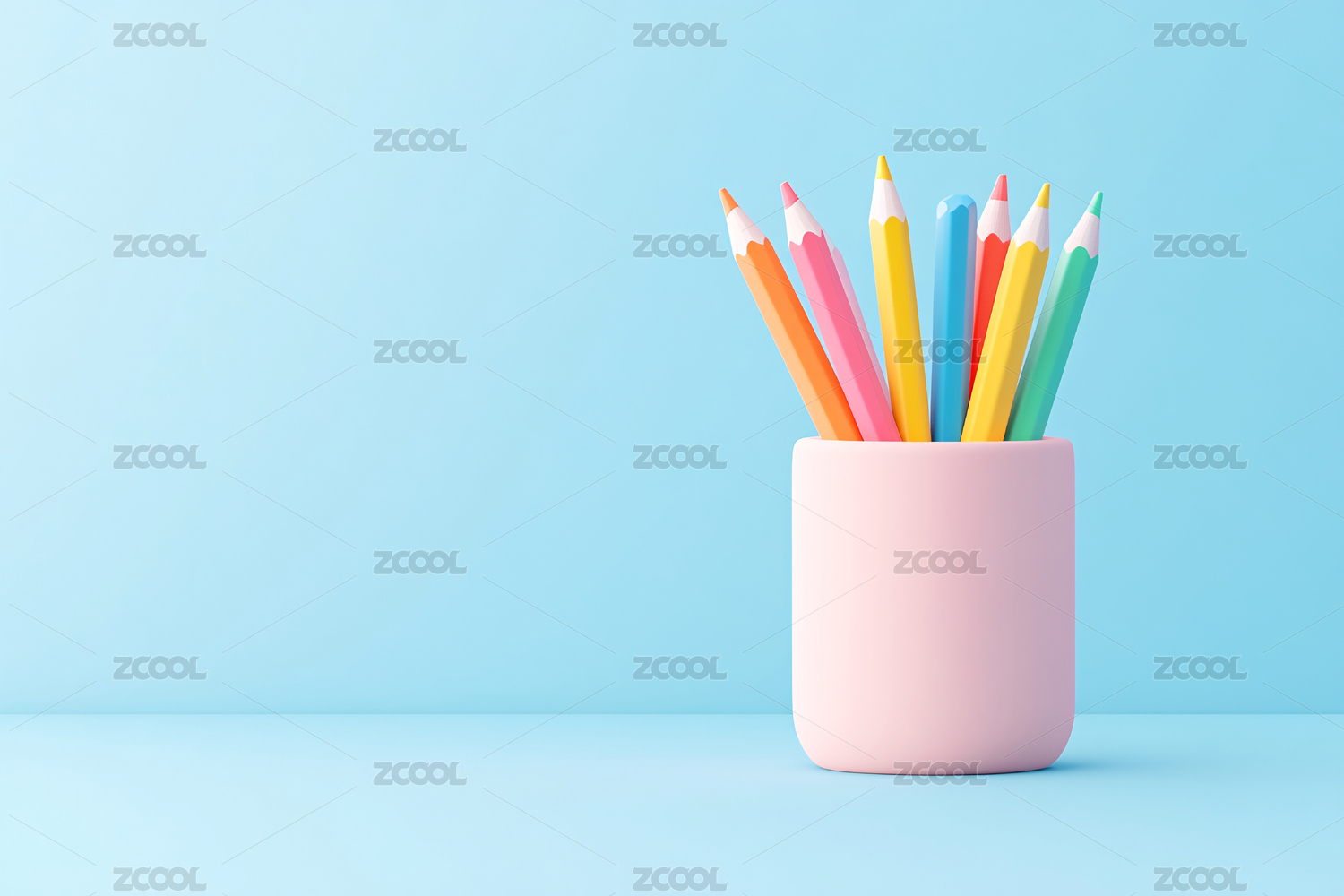 彩色铅笔的学习办公三维场景插图