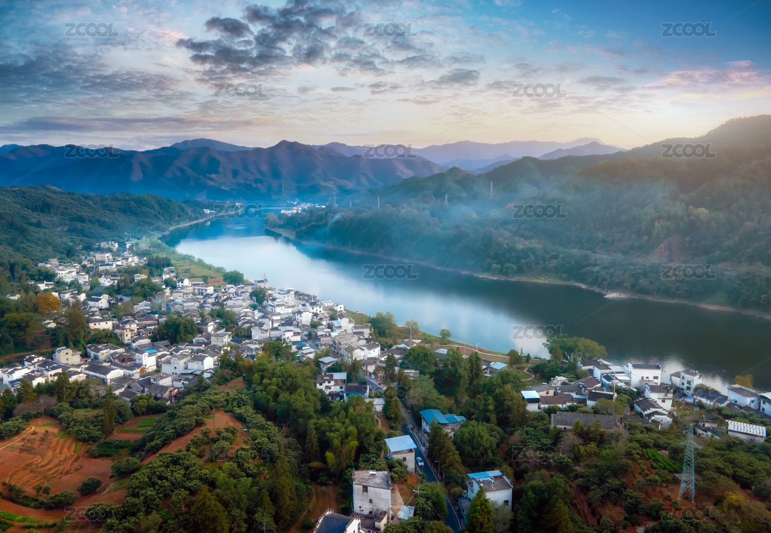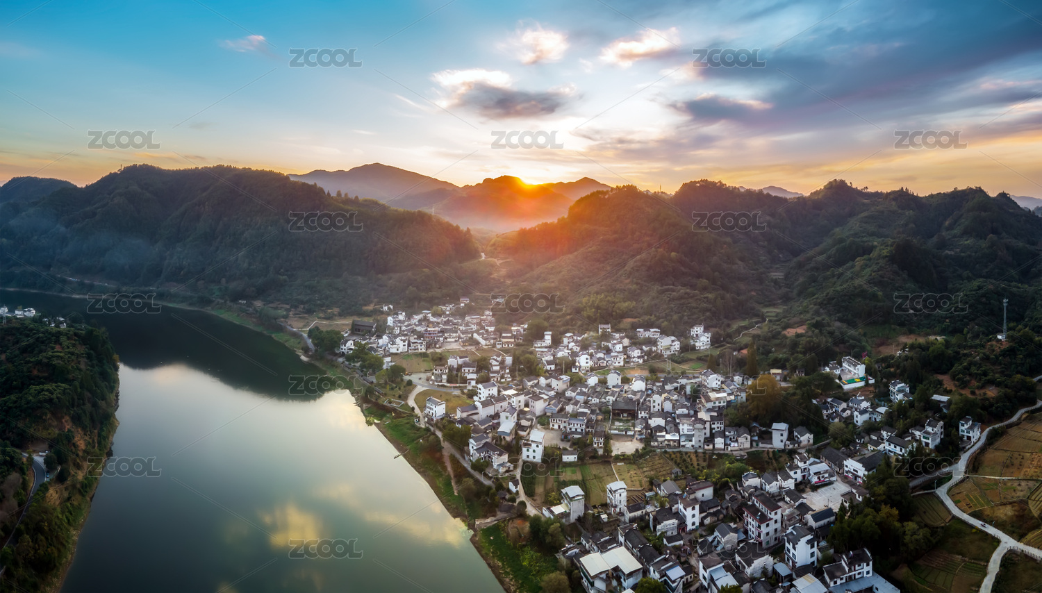 徽州,十里画廊,青山绿水,自然风景,新安江,沿江两岸,乡村,房屋,徽派山水,小船