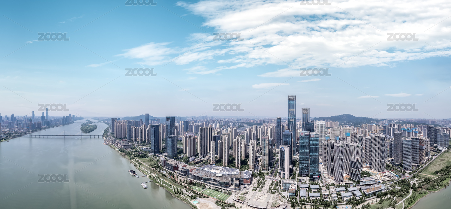 中国湖南长沙湘江北辰三角洲航拍城市风光
