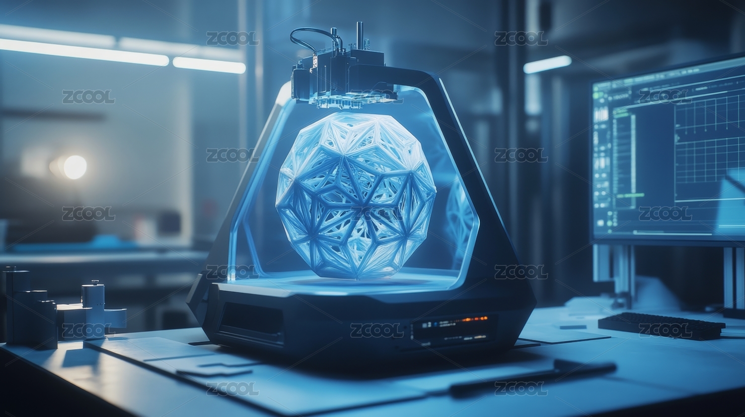 科技,蓝色,科技感,精密,未来科技,工业设计,模型,3D打印,灯光,三维打印