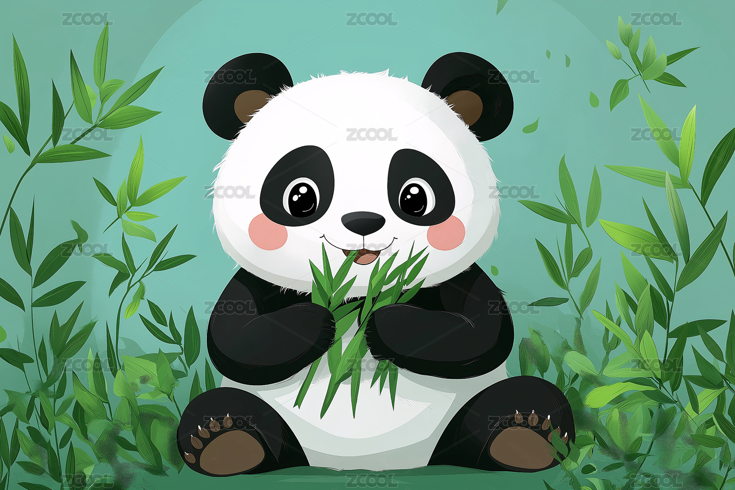 可爱熊猫和竹子