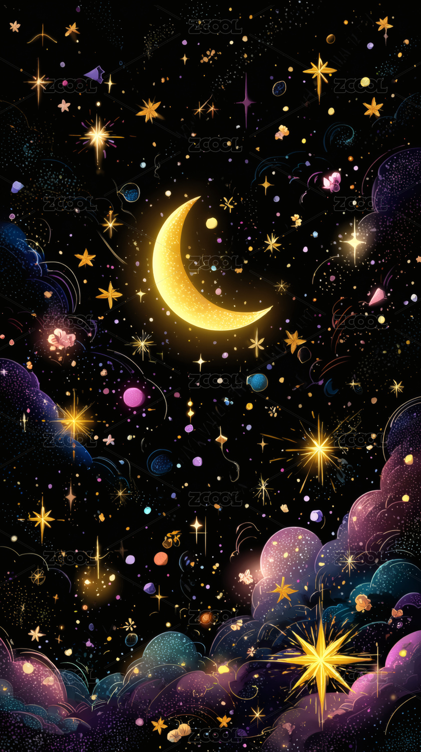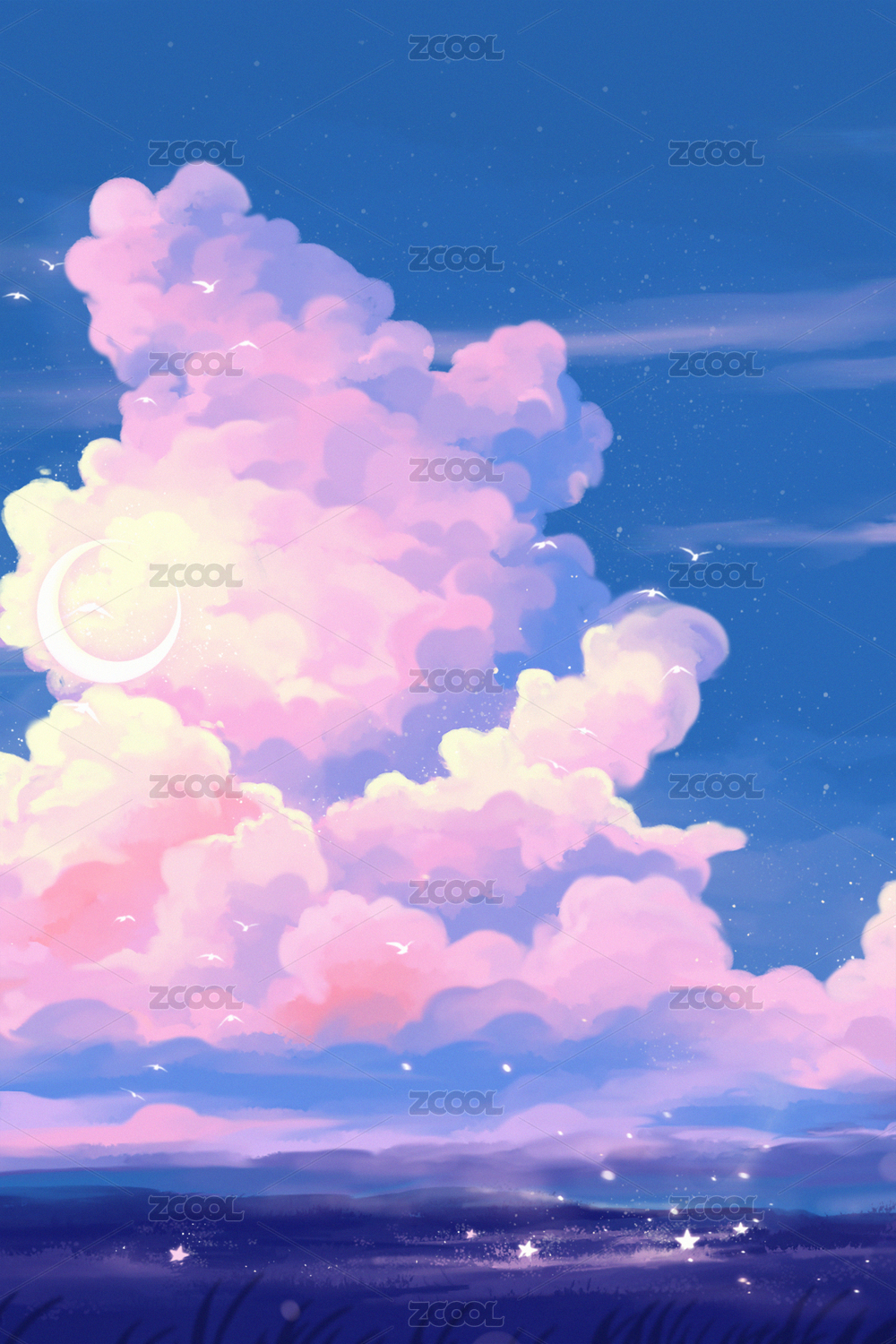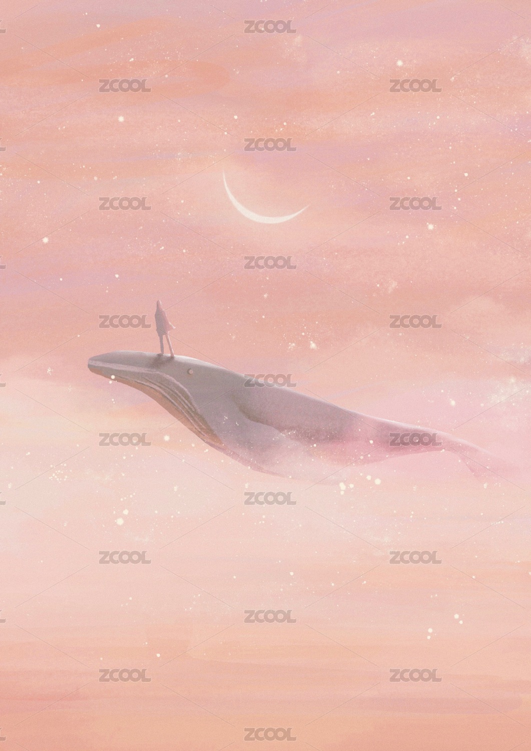 海豚,星球,月亮,云,云彩,紫色,梦幻,唯美,壁纸,锁屏