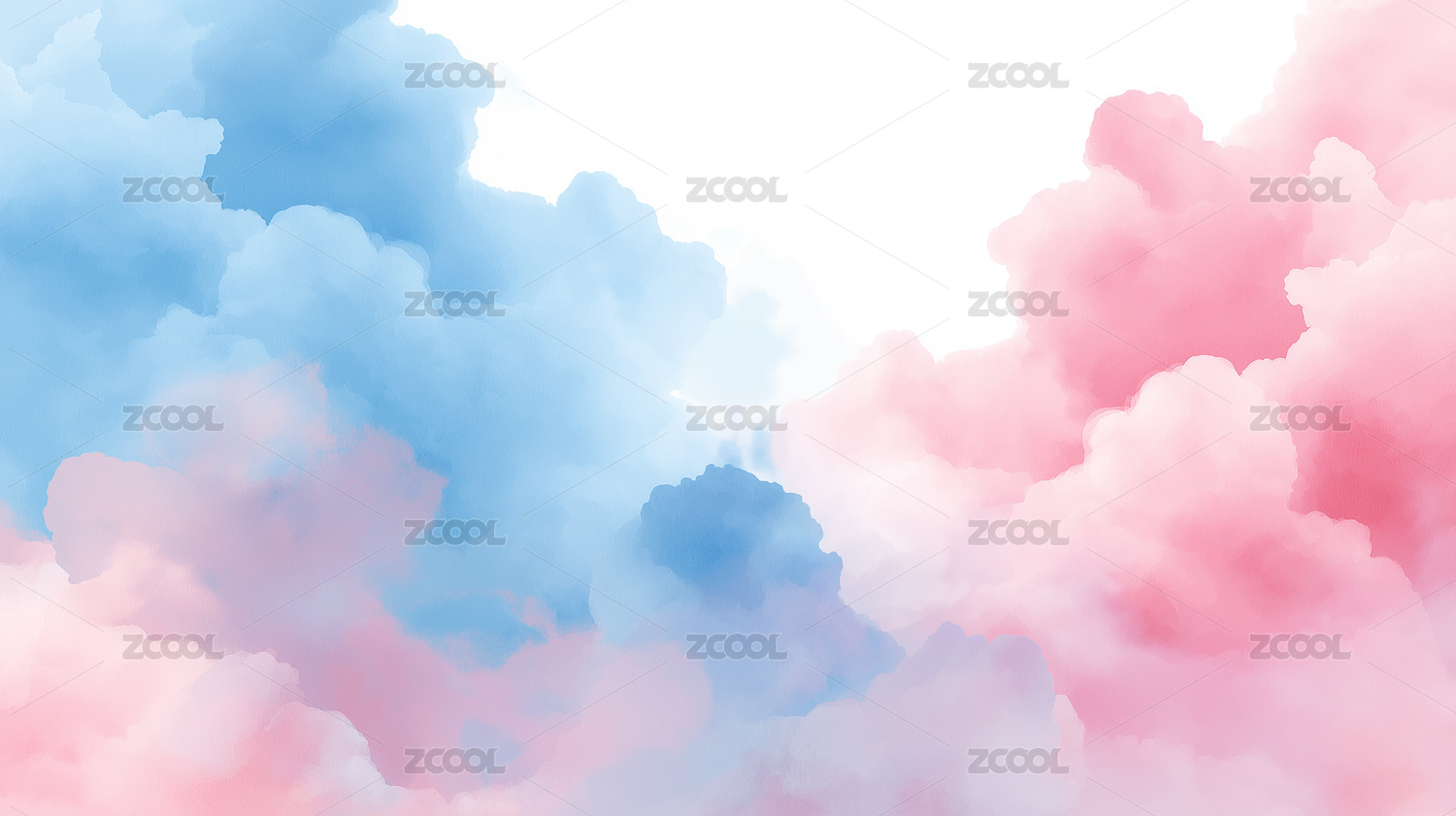 粉蓝水彩云朵梦幻背景插画设计素材