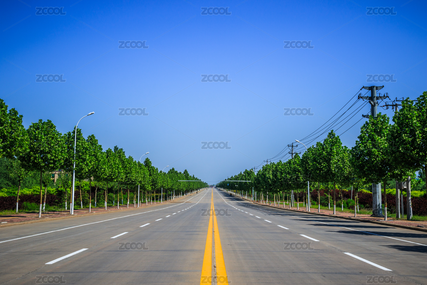 宽敞明亮的城市街道及绿化景观全景