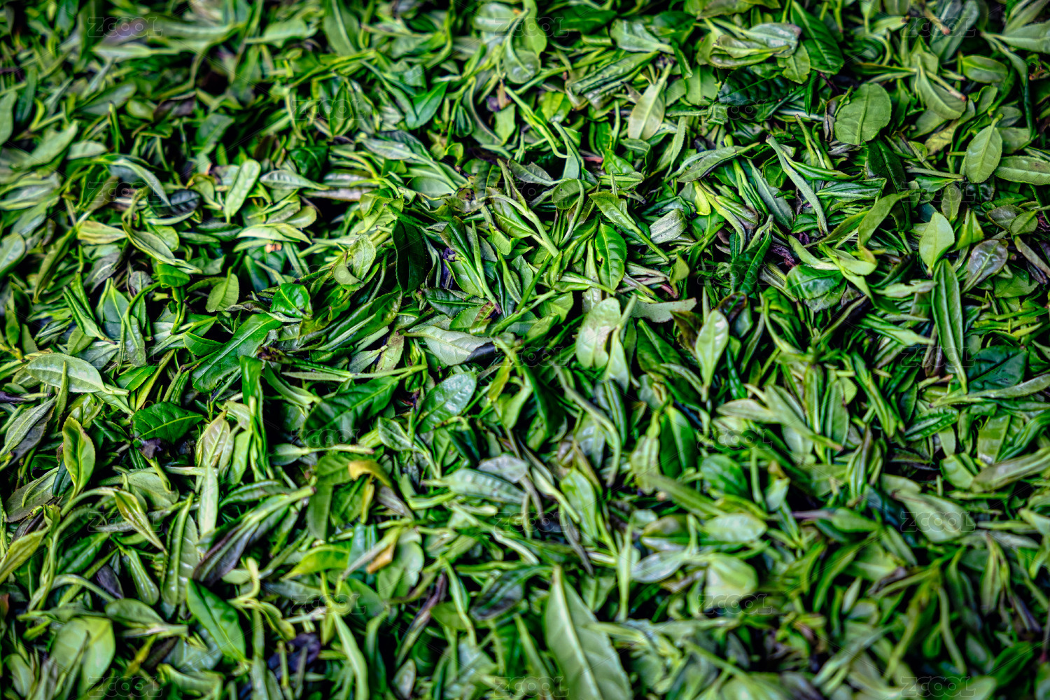 新鲜采摘的春茶茶叶嫩芽堆在一起