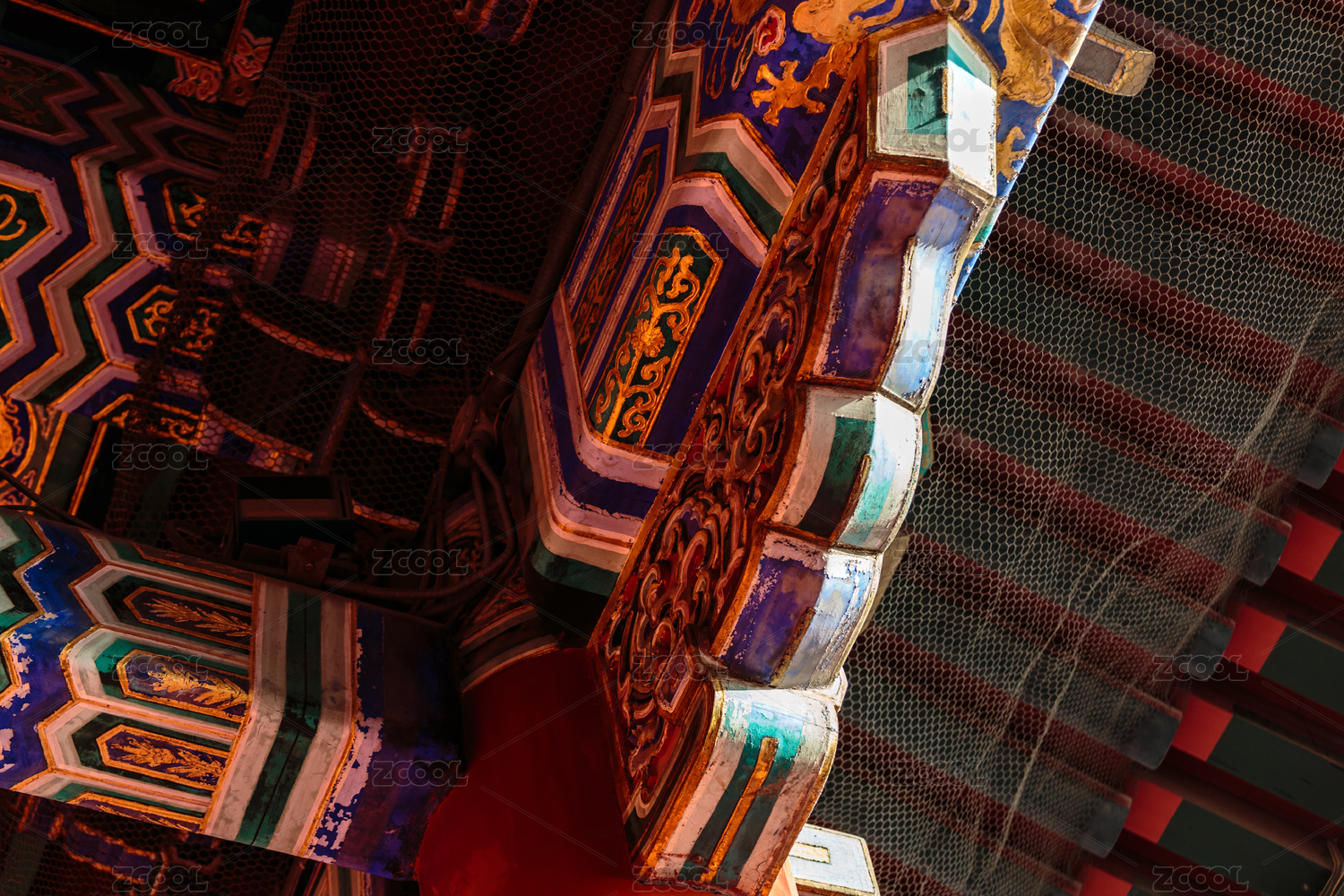 中国传统古建筑和玺彩画彩绘纹理图案特写