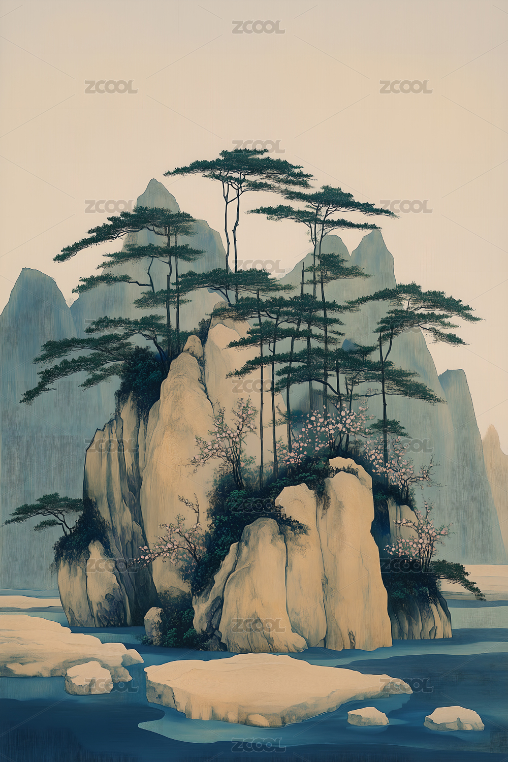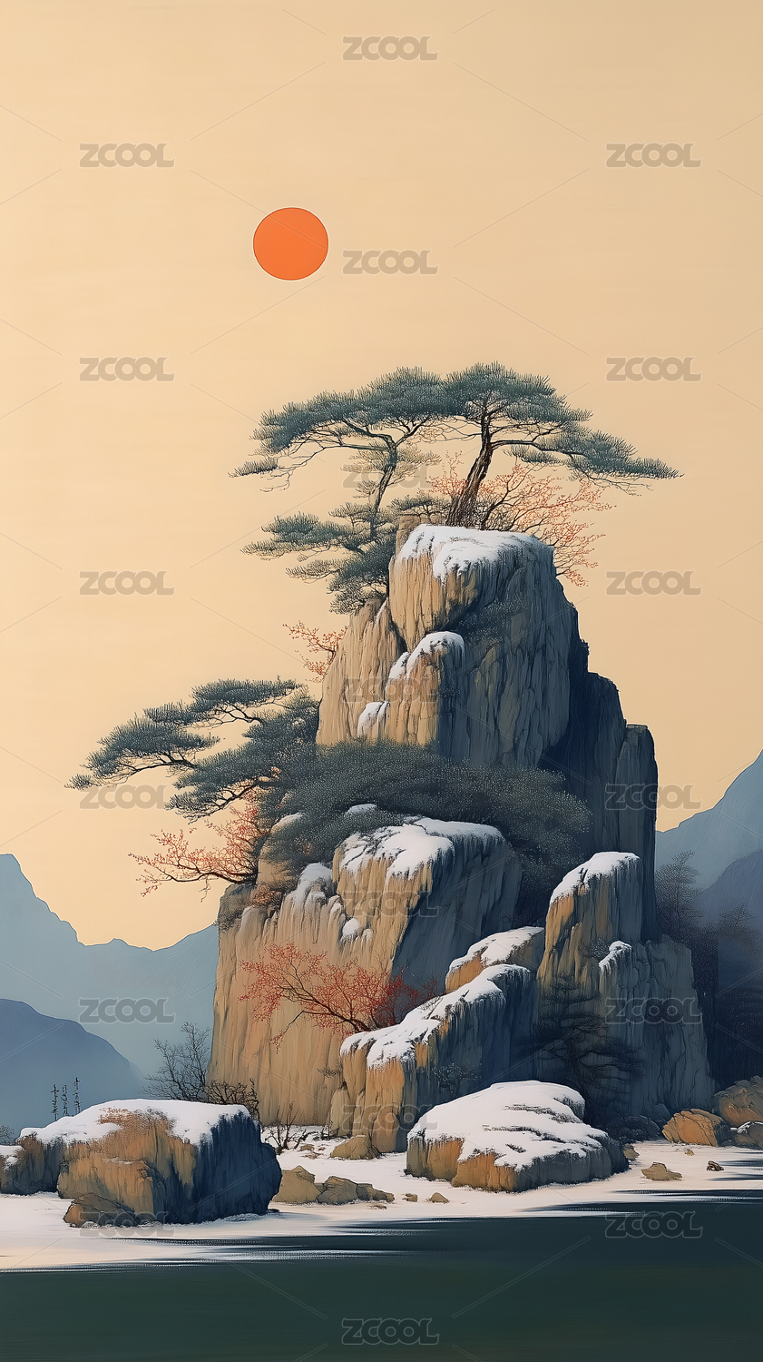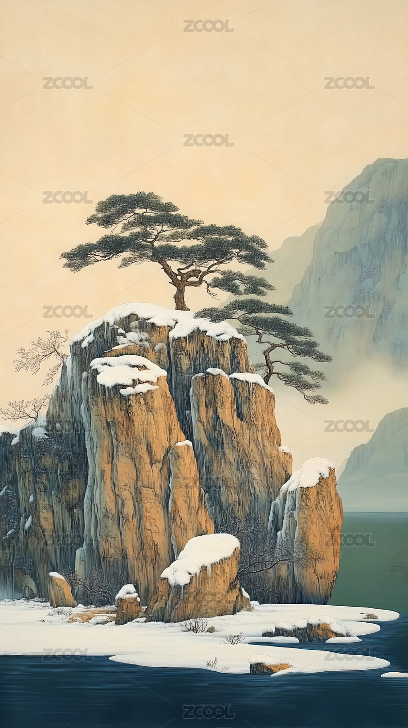 山水画,雪景,中国风,冬天,立体,新中式,大寒,小寒,大雪,小雪