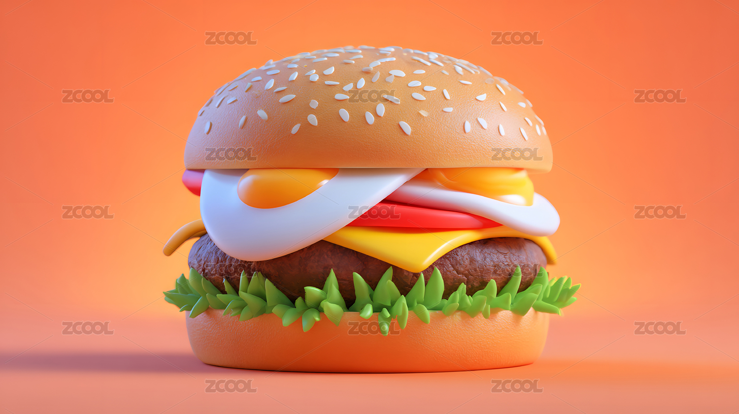 创意,可爱,3d,图形,卡通,汉堡,美食