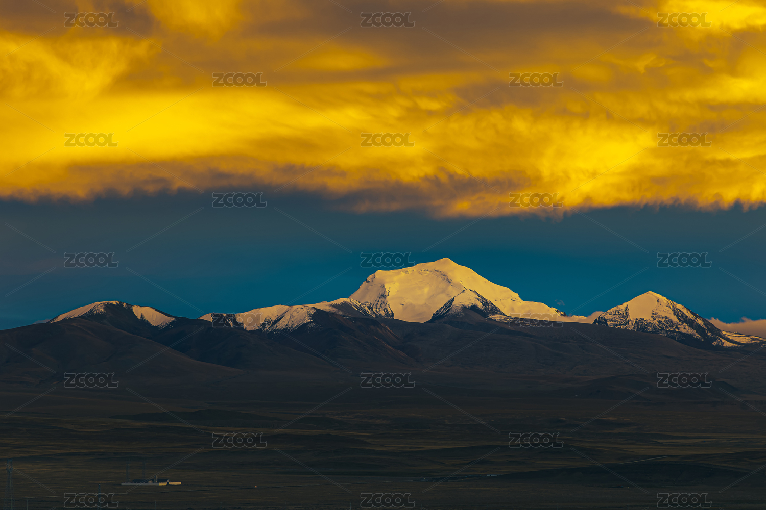 中国西藏日喀则晚霞下的喜马拉雅卓木玉莫雪