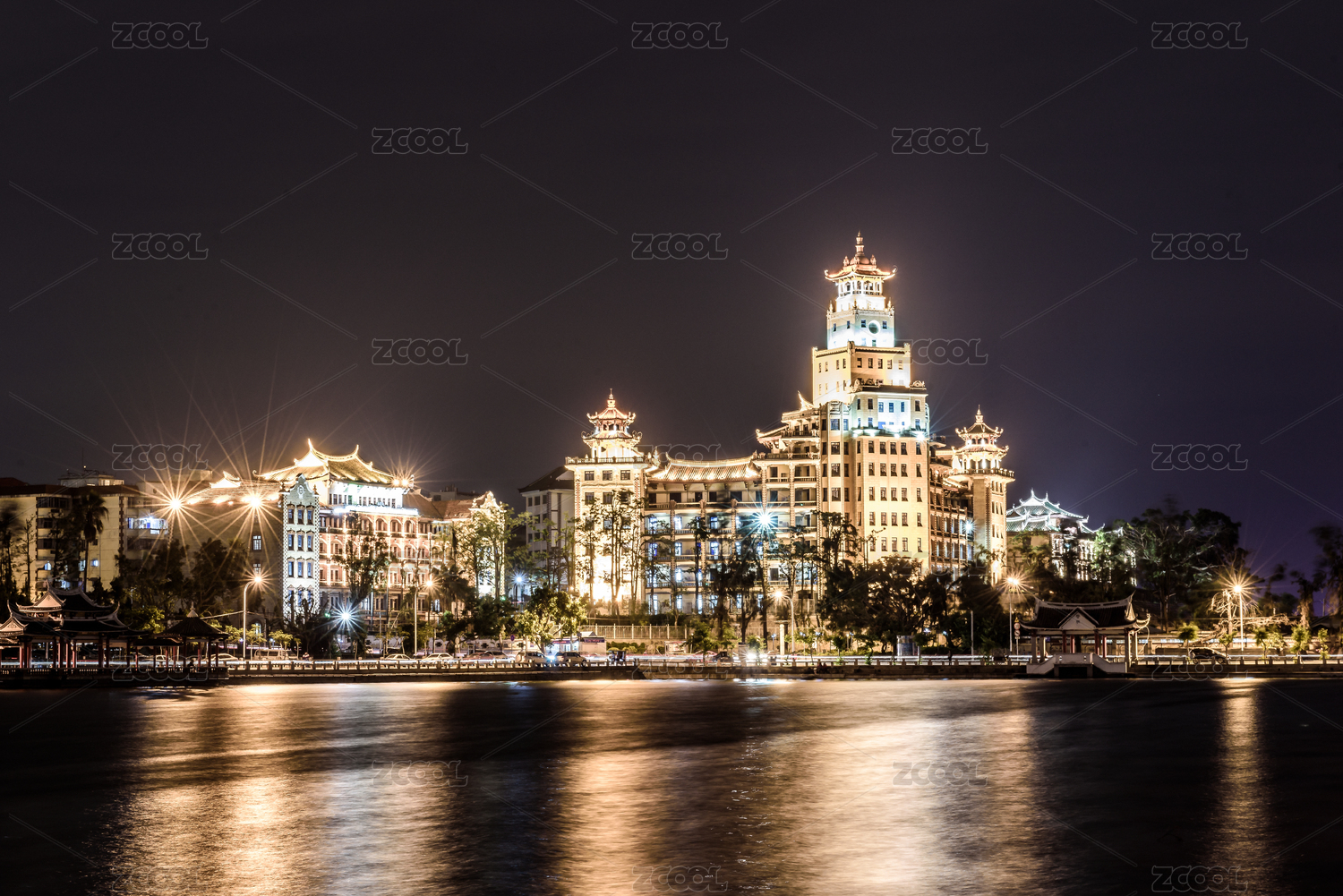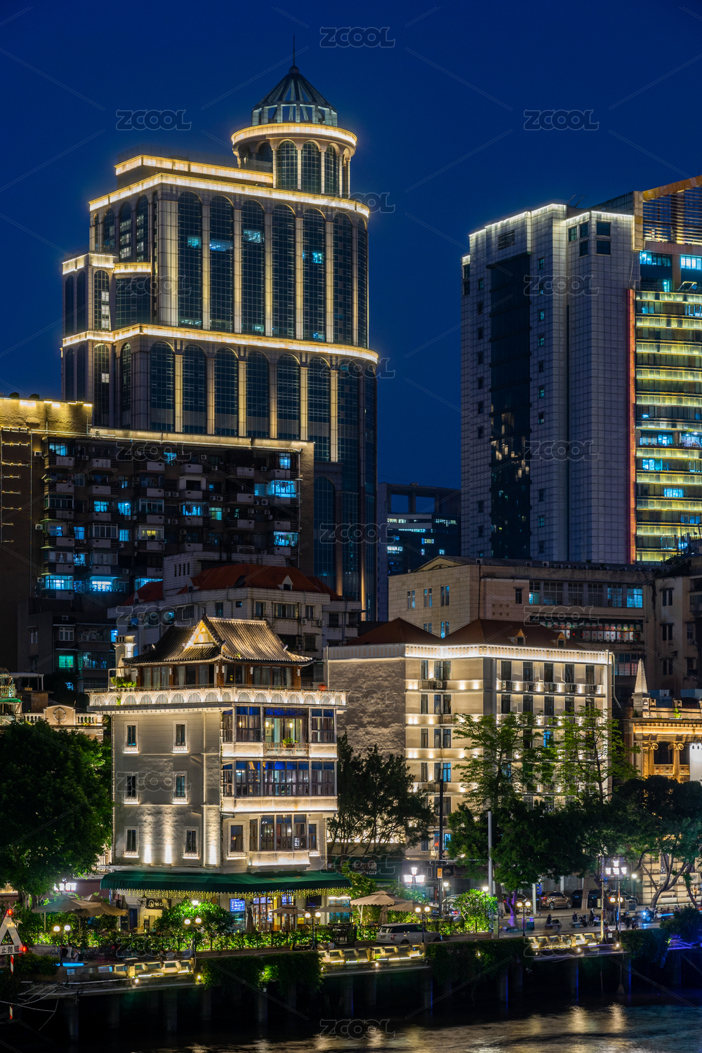 广州荔湾珠江滨江广场欧式建筑夜景灯光