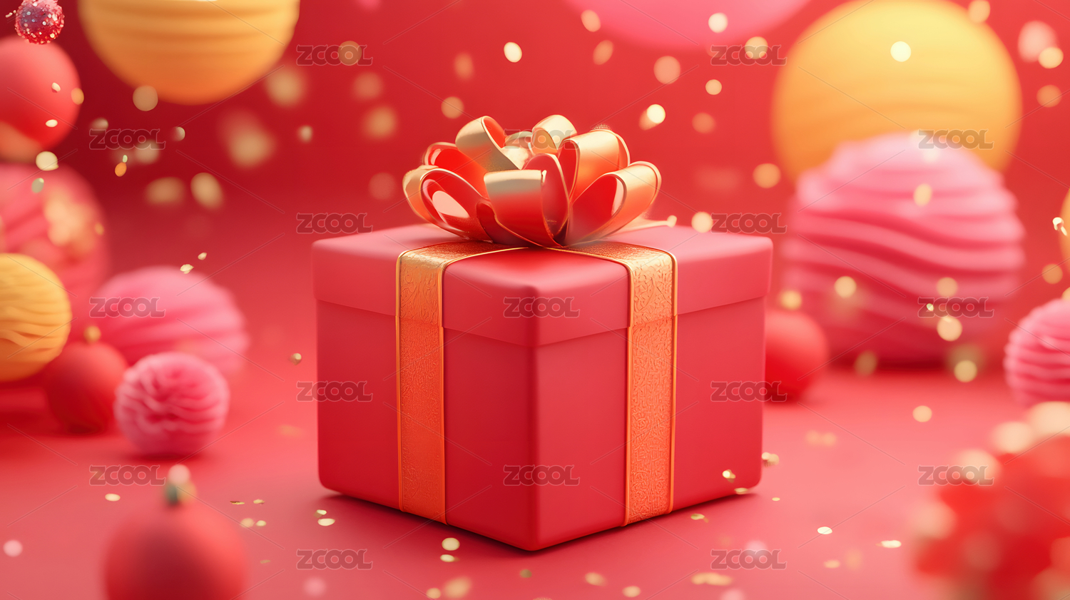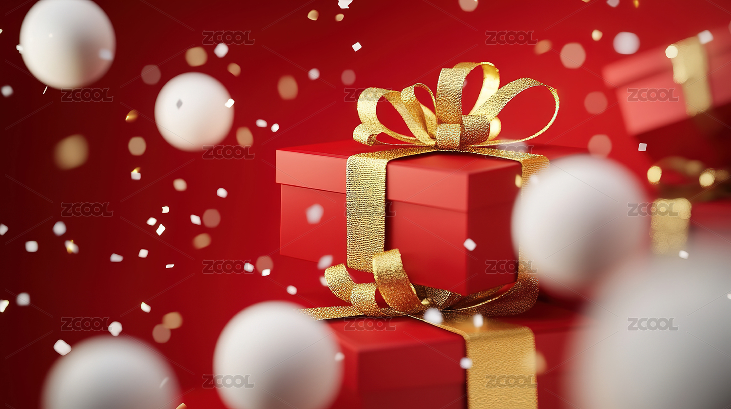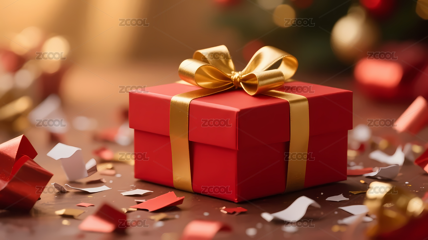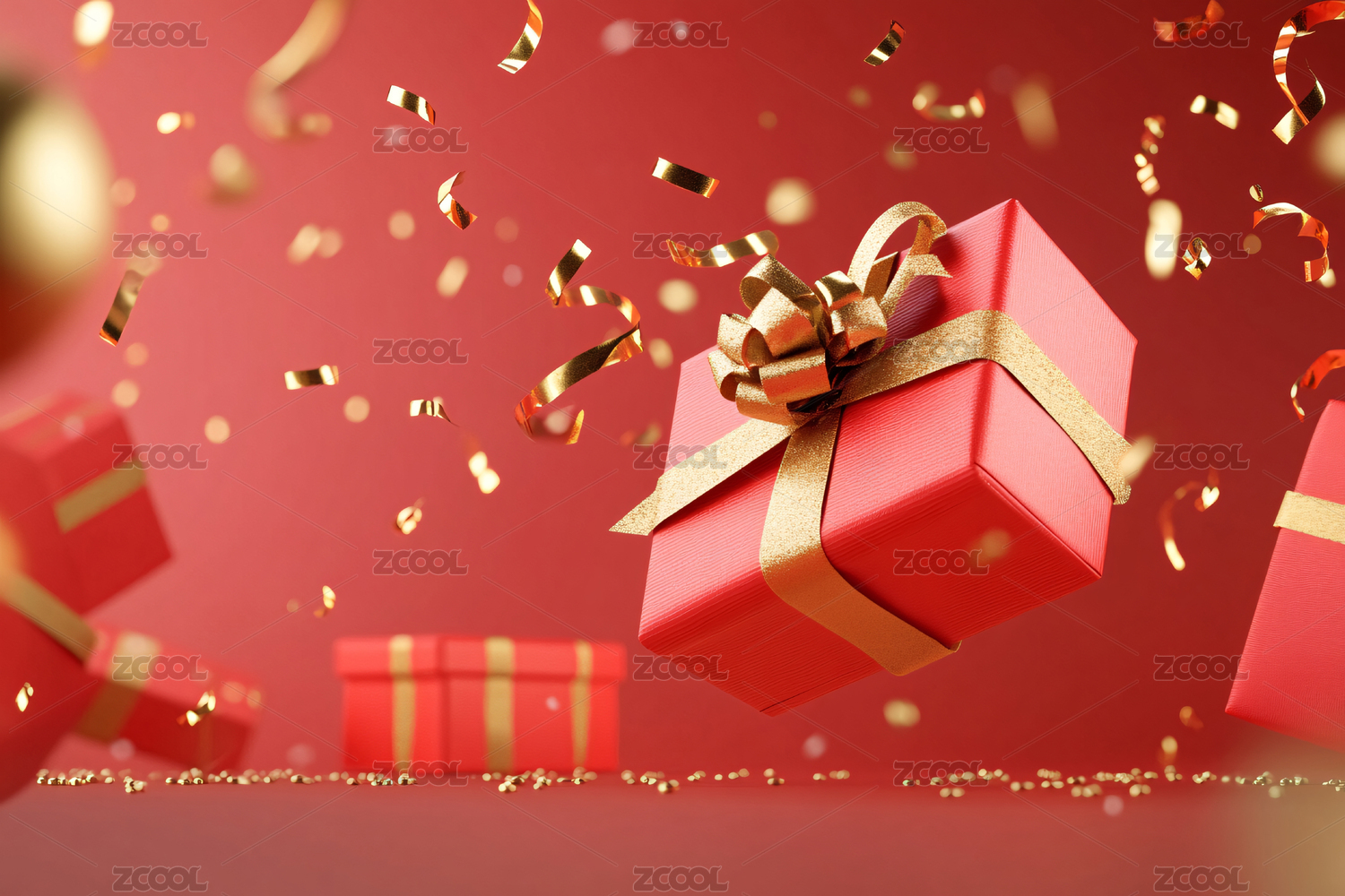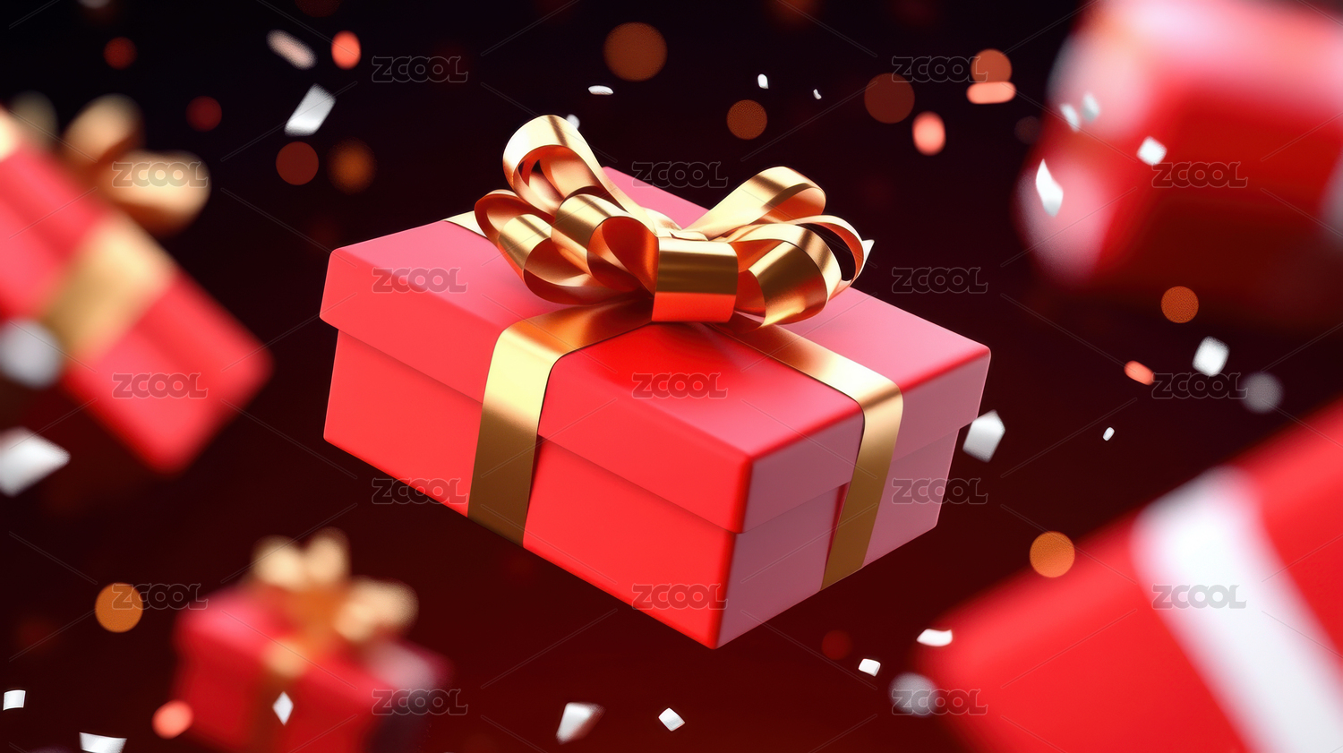 红色礼盒与金色蝴蝶结