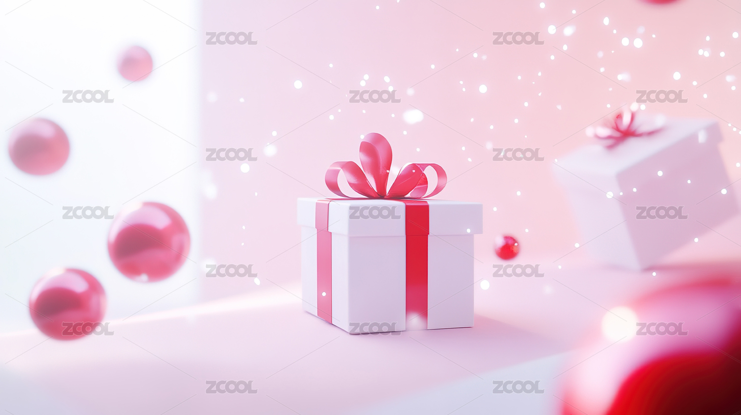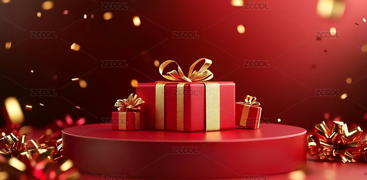 红色礼品盒与红色平台