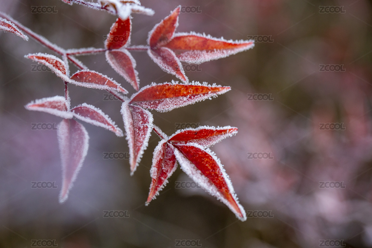 中国江苏淮安古淮河湿地公园冰霜下的南天竹