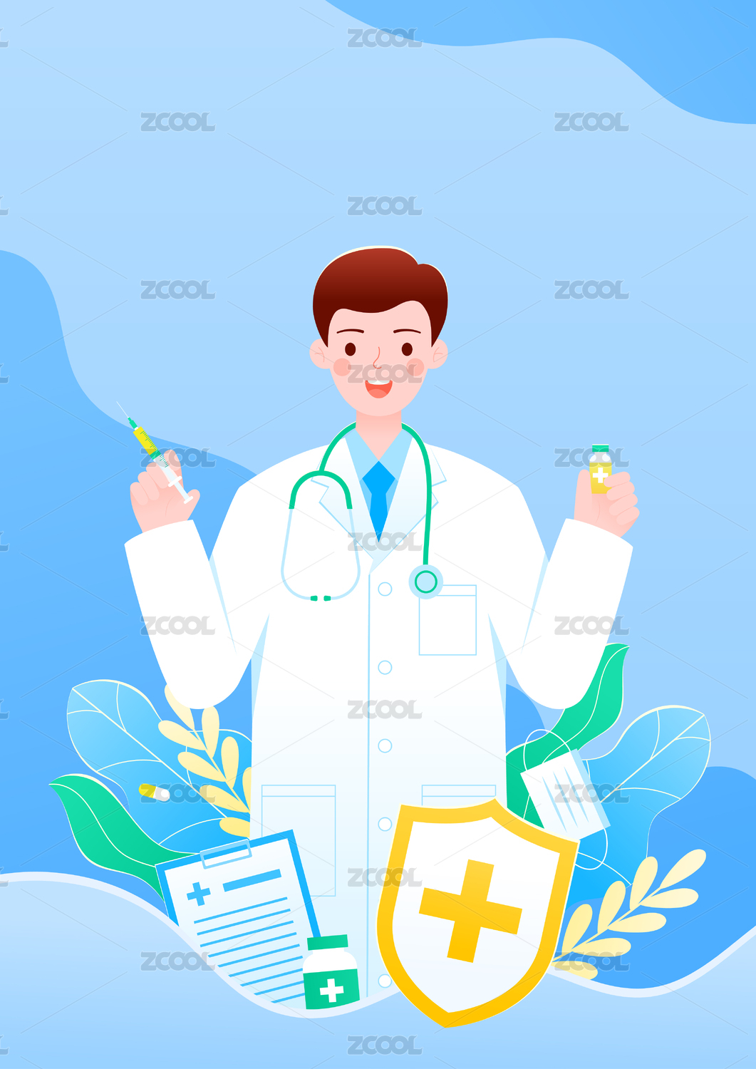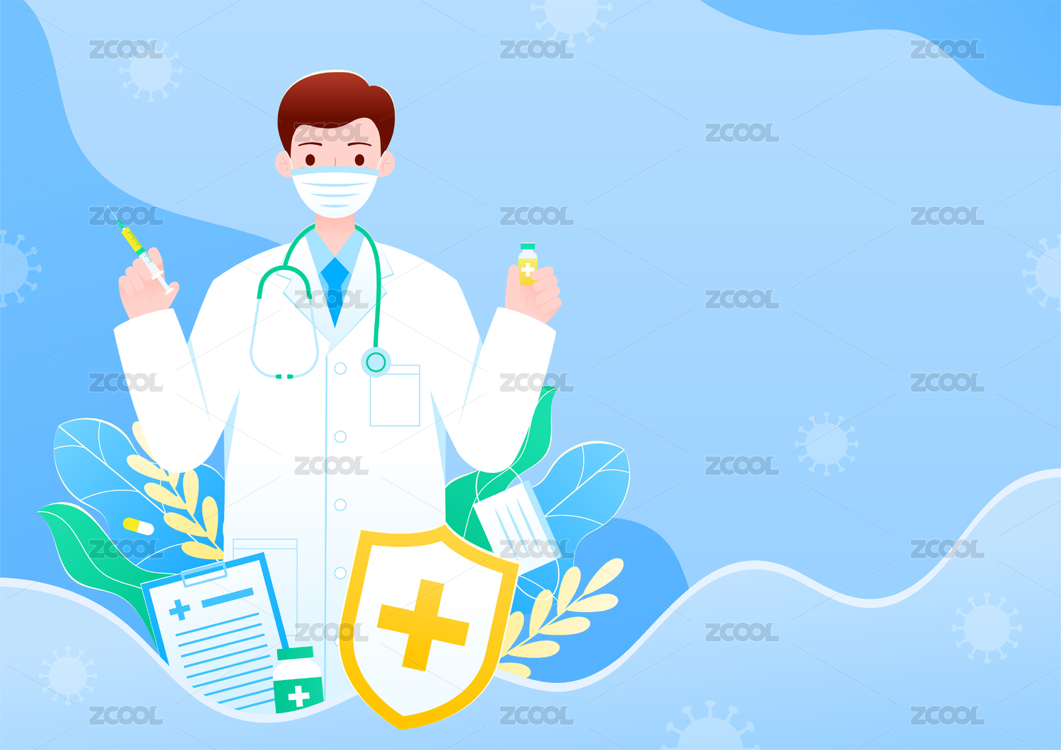 男医生打针抗击病毒疫情医疗健康矢量插画