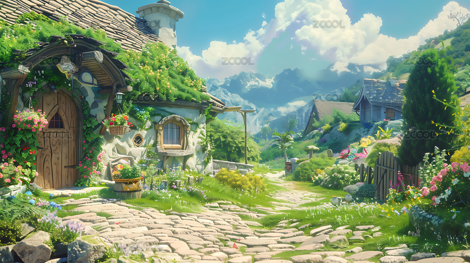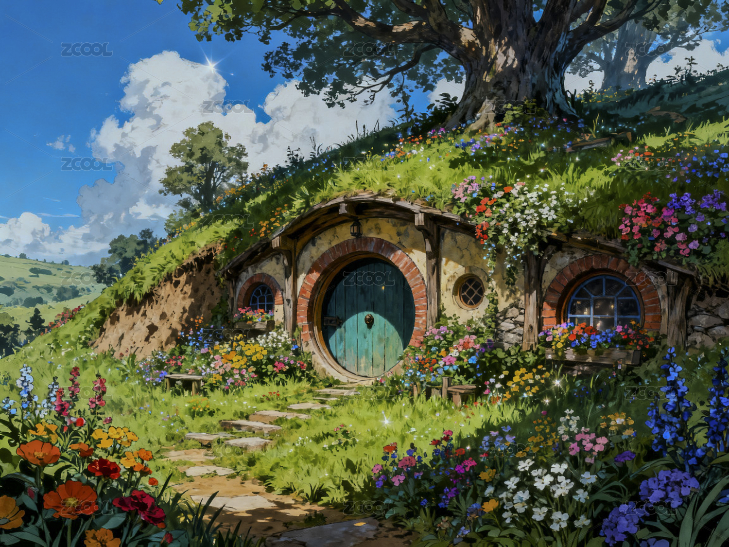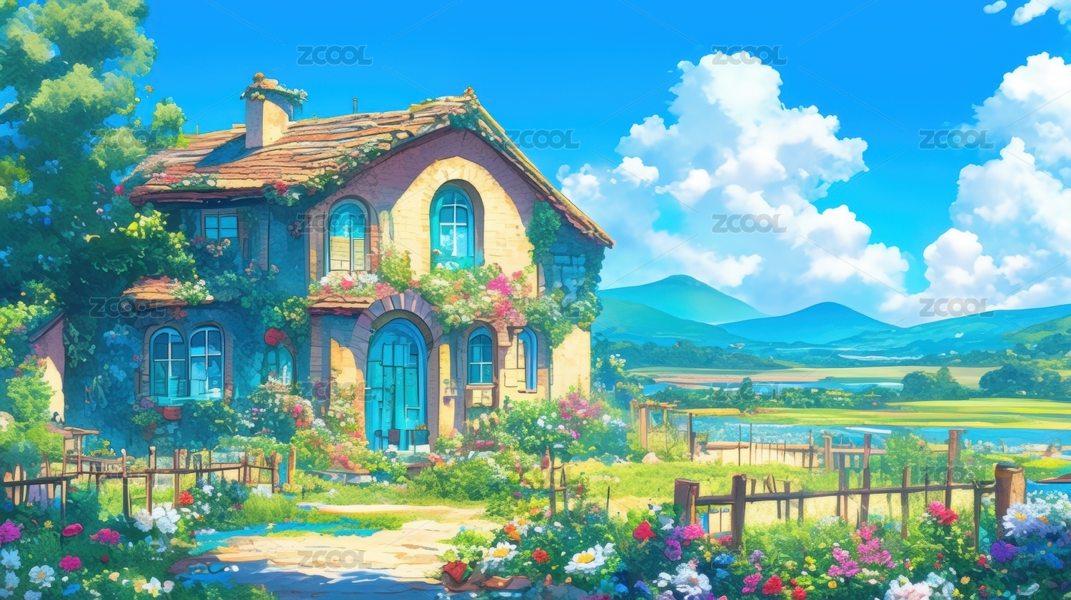 治愈系童话绘本风格郊外绿色的风景壁纸