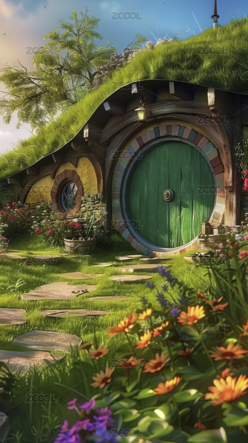 神奇,奇特,建筑,魔法村庄,城市,古老,圆柱形,圆锥形屋顶,圆形窗户,温暖光芒