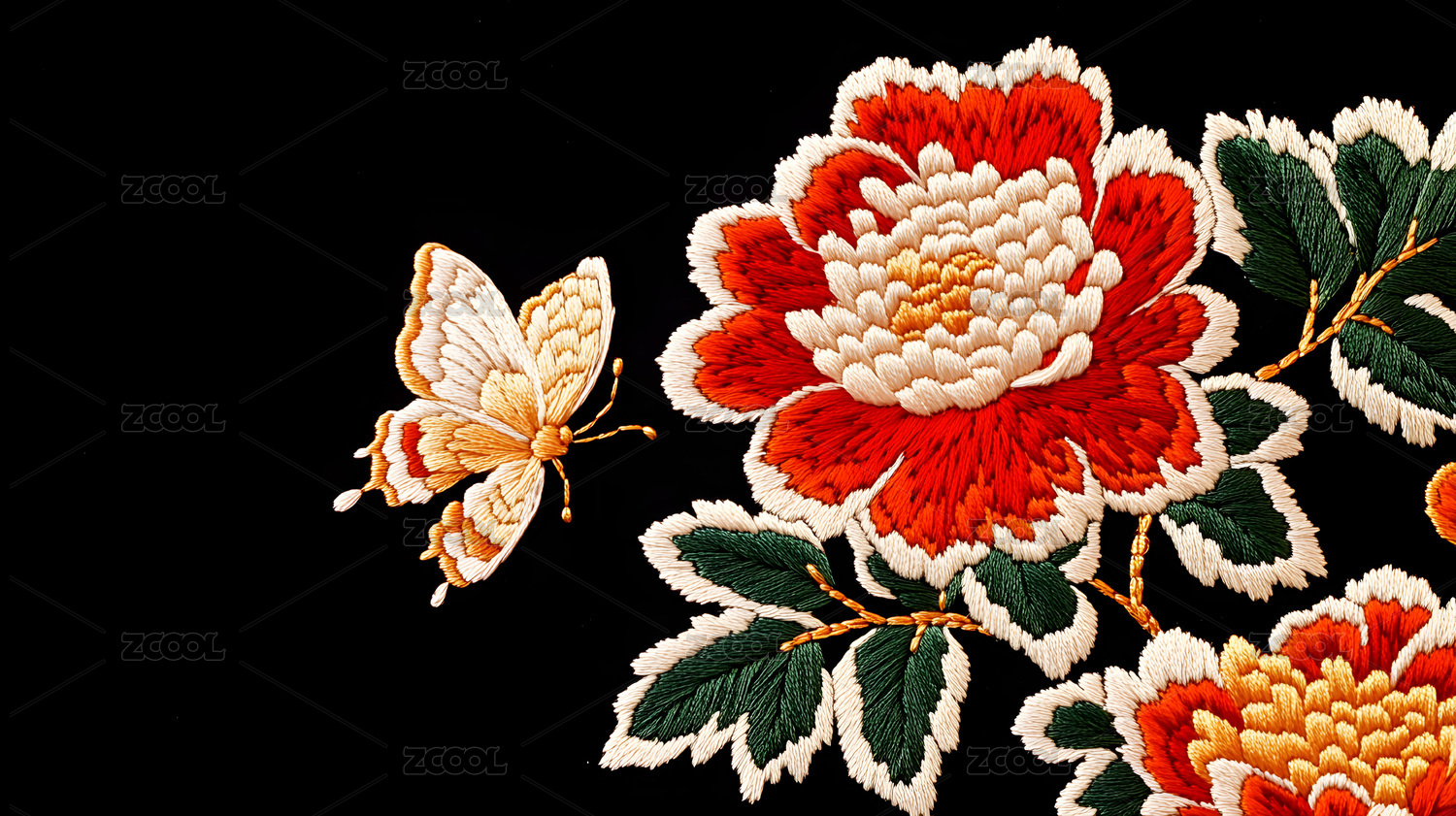 美丽的蝴蝶在菊花刺绣上的图案