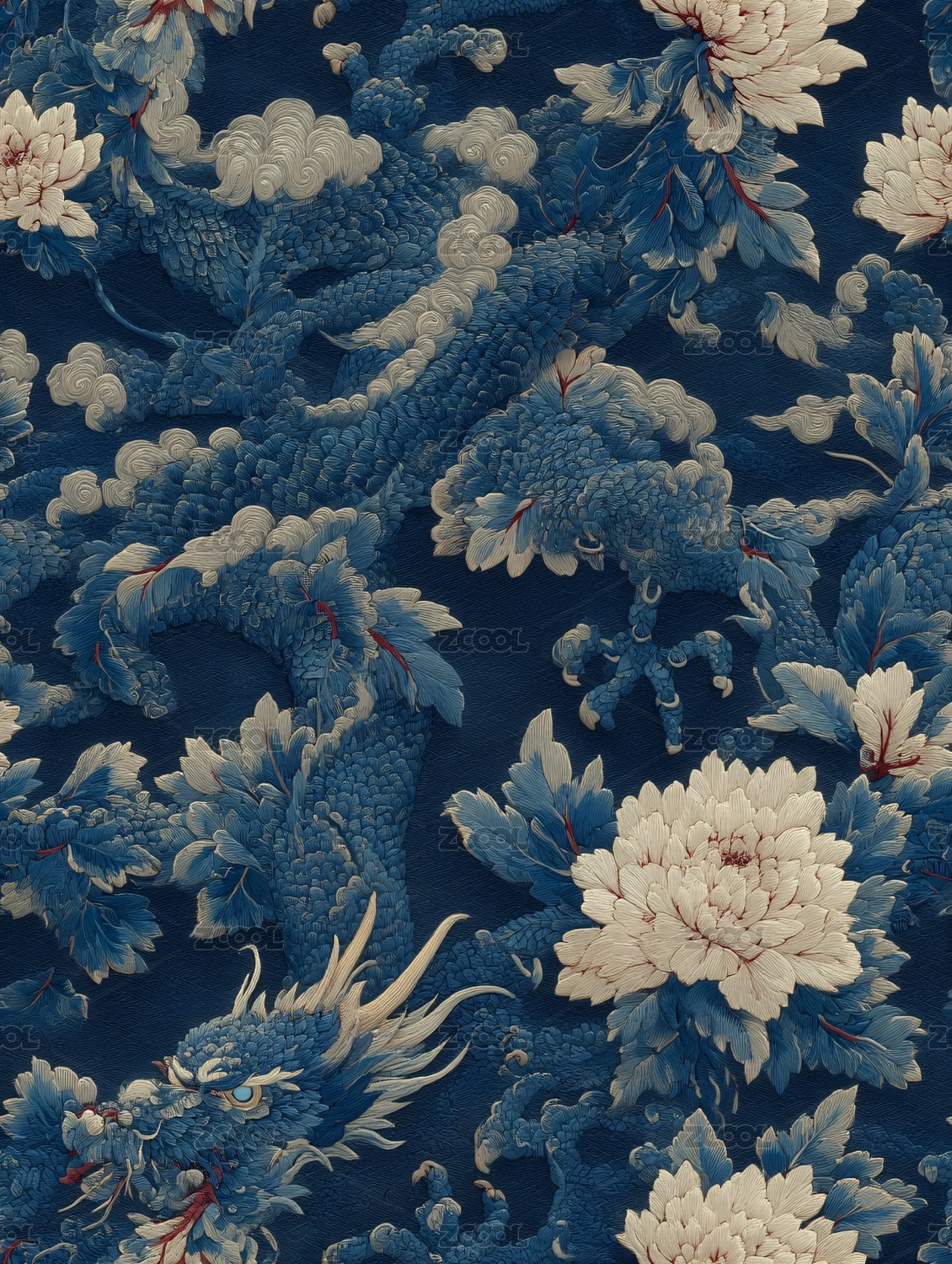 蓝底龙与牡丹中式图案