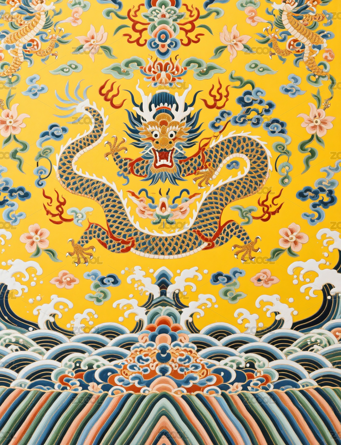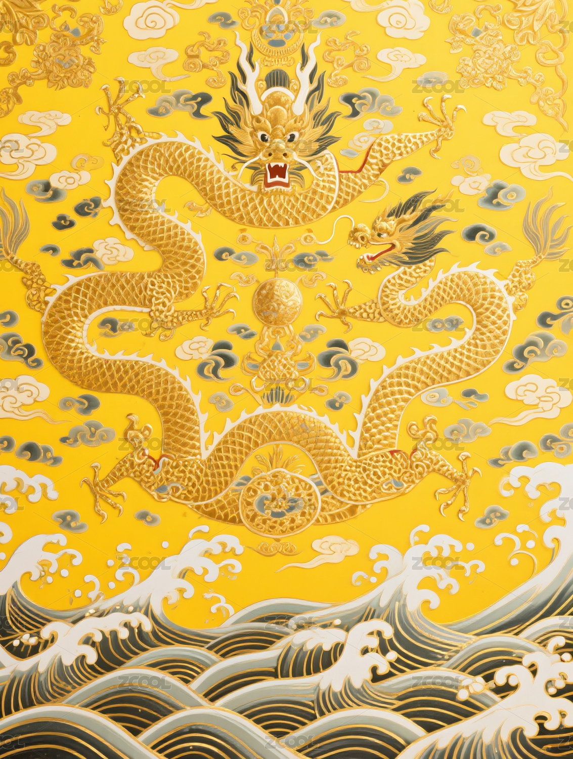 皇家黄色龙纹样背景