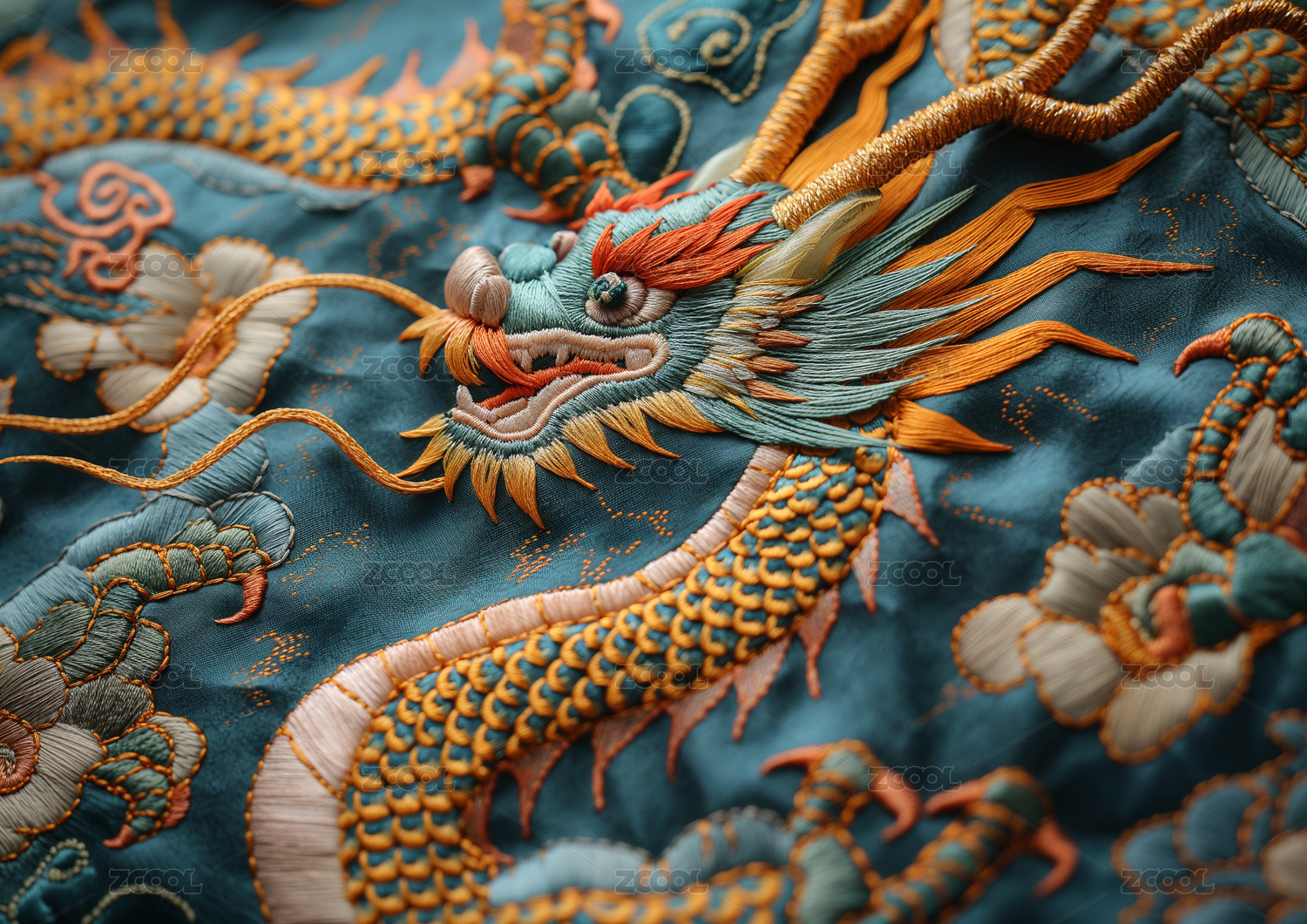 刺绣风格的一条中国神龙