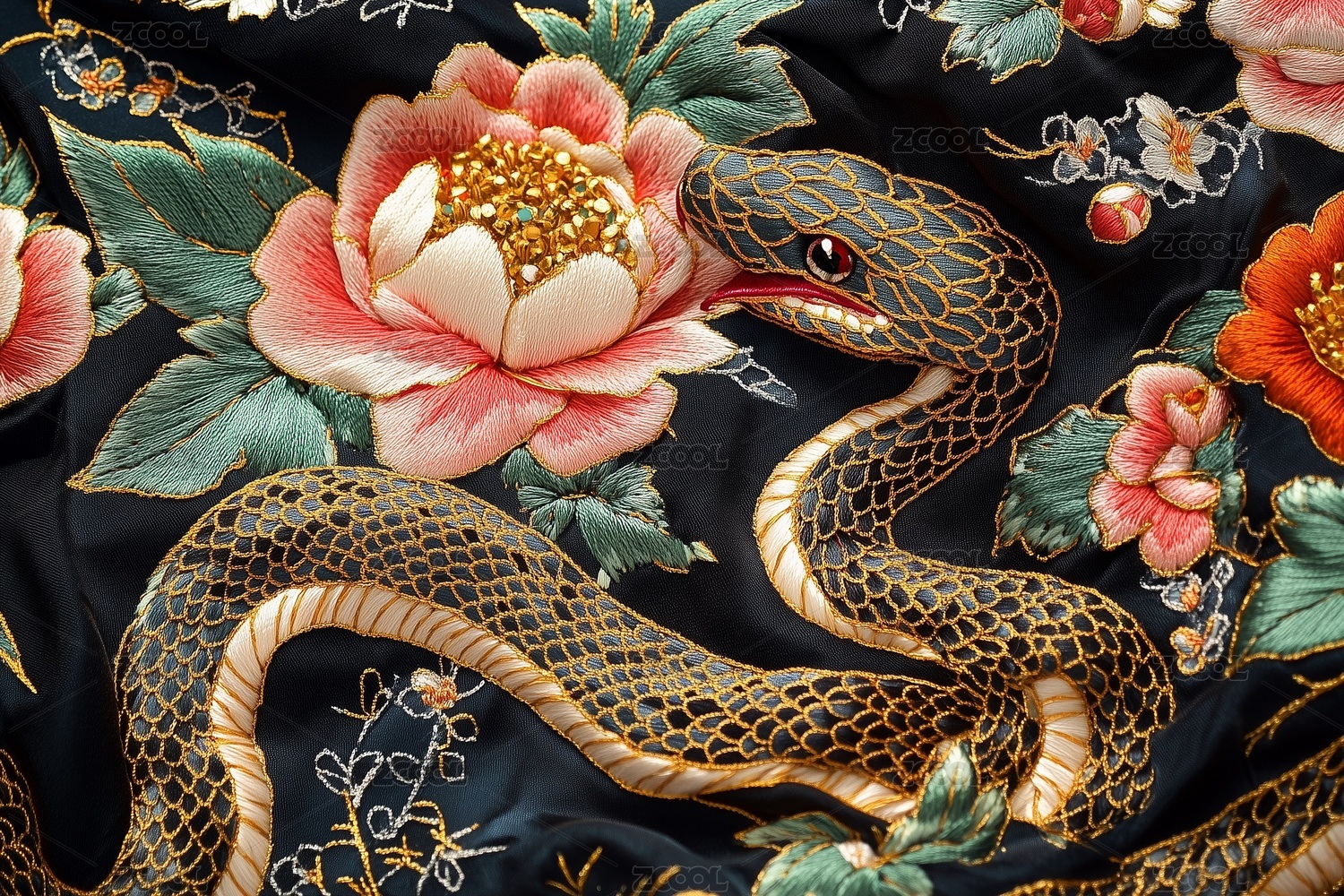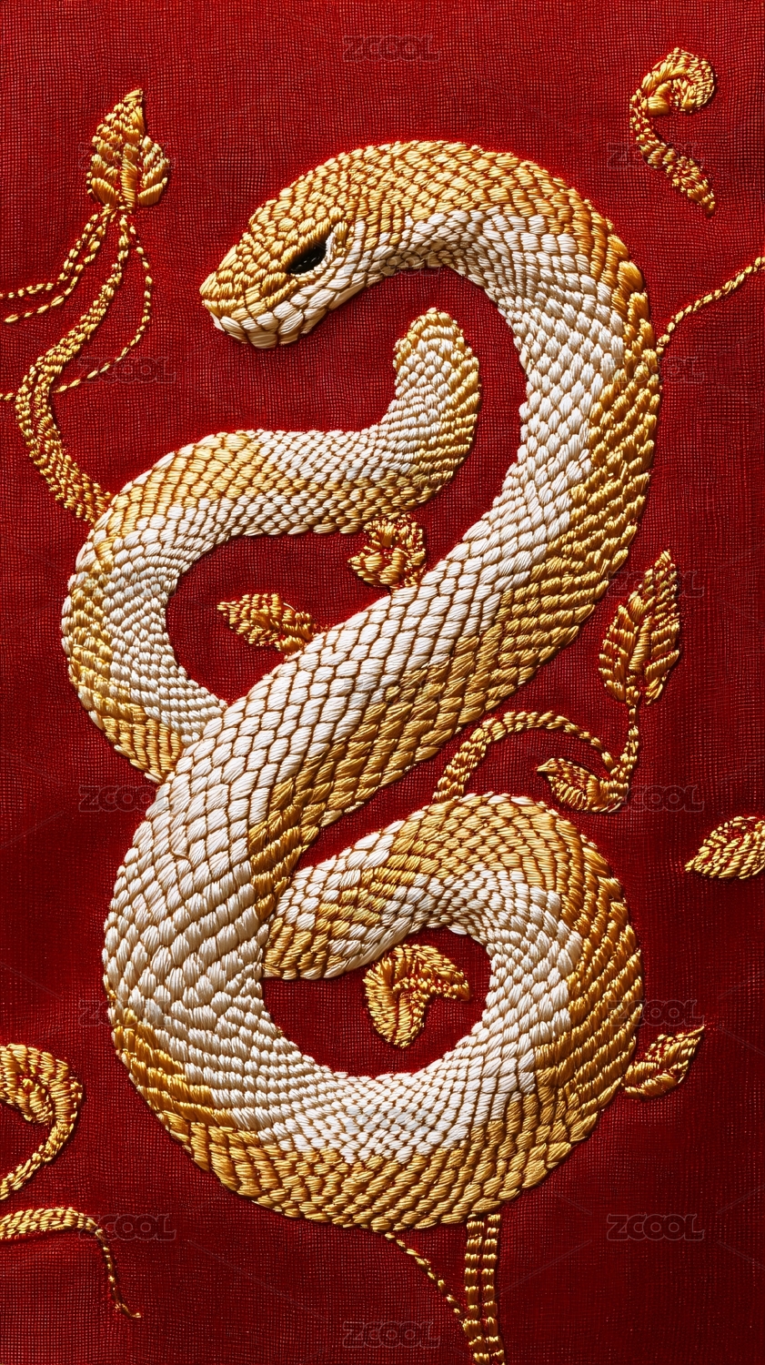 刺绣蛇与花卉