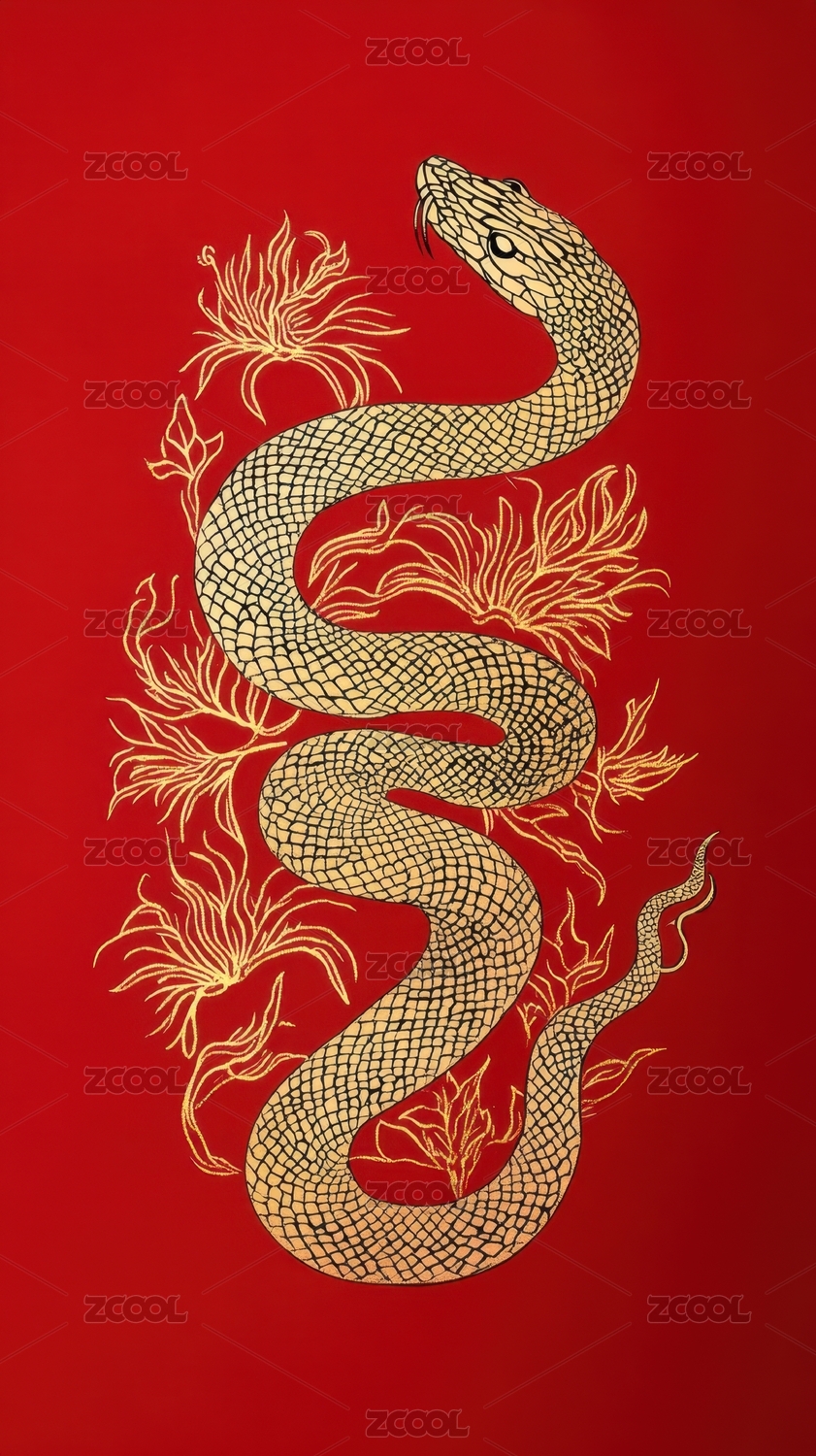 红色背景上的金蛇图案