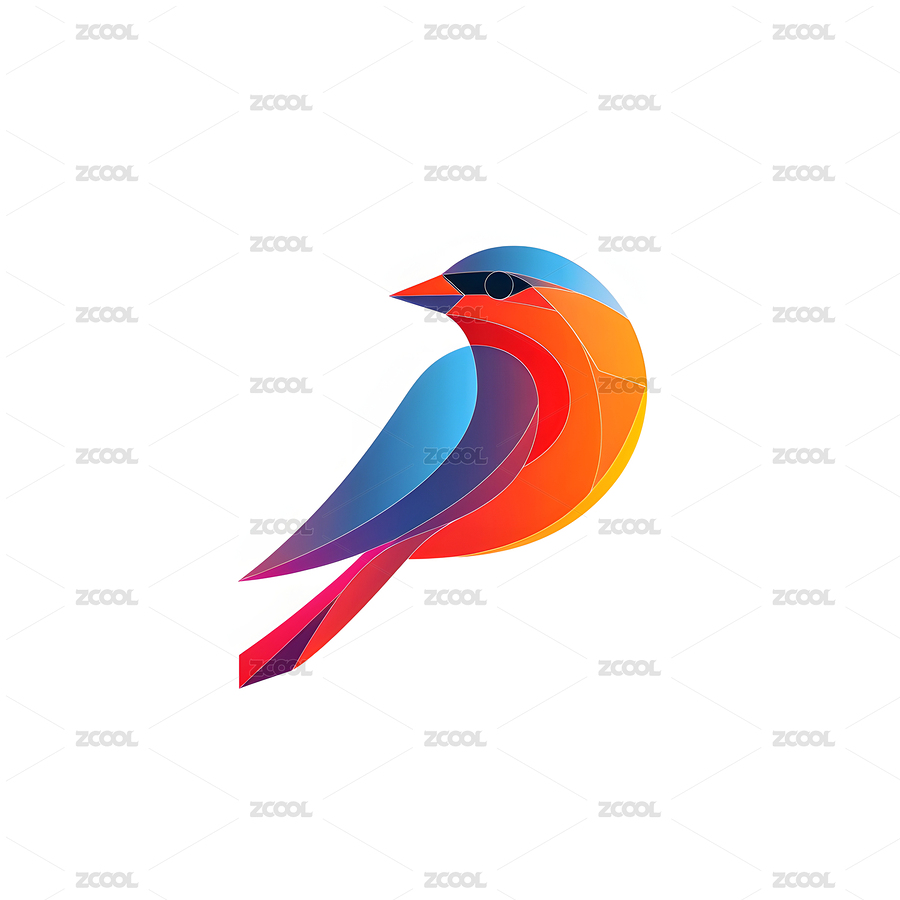 小鸟,图标,logo,白色背景,平面风格,彩色