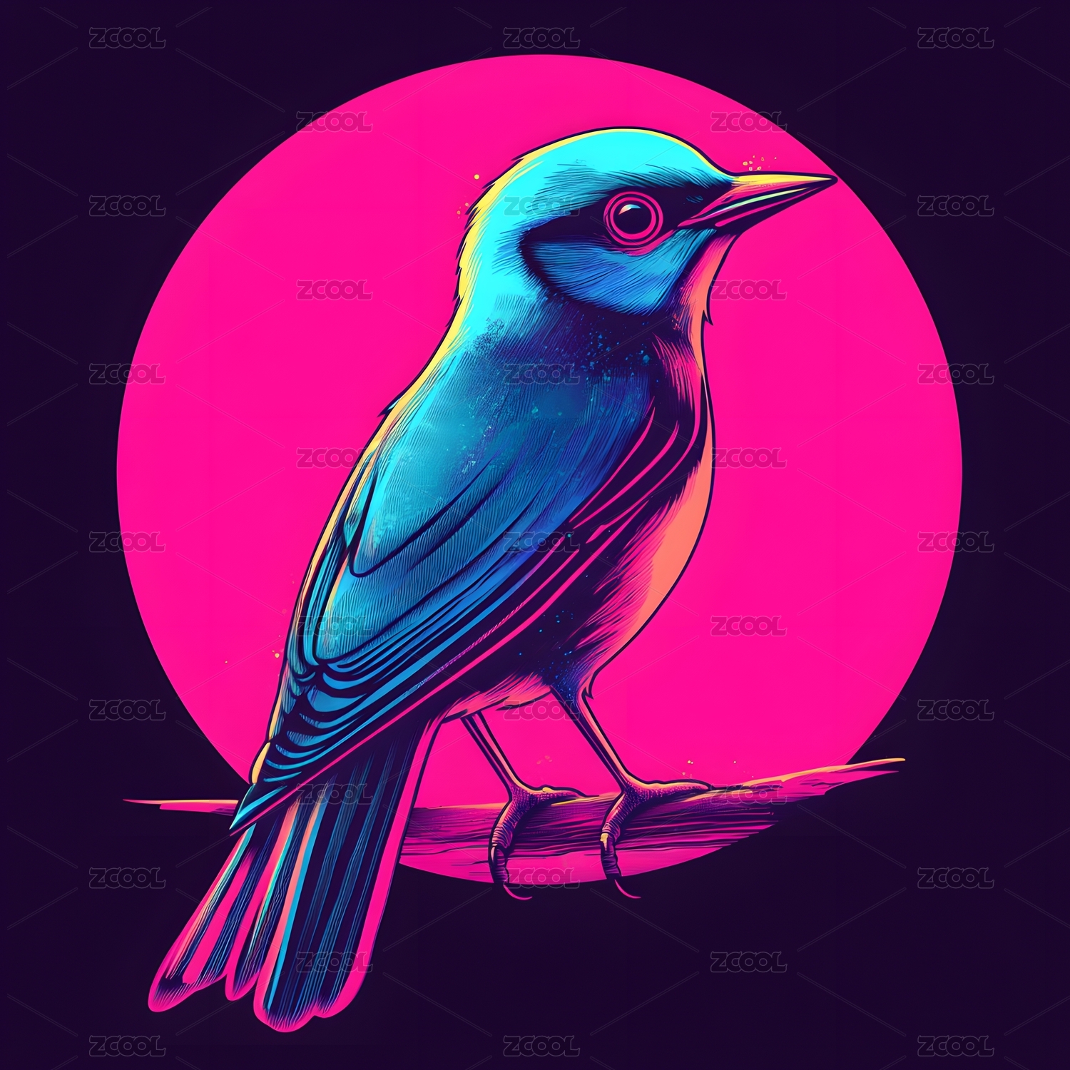 美式赛博朋克复古风格站在枝头上的喜鹊头像