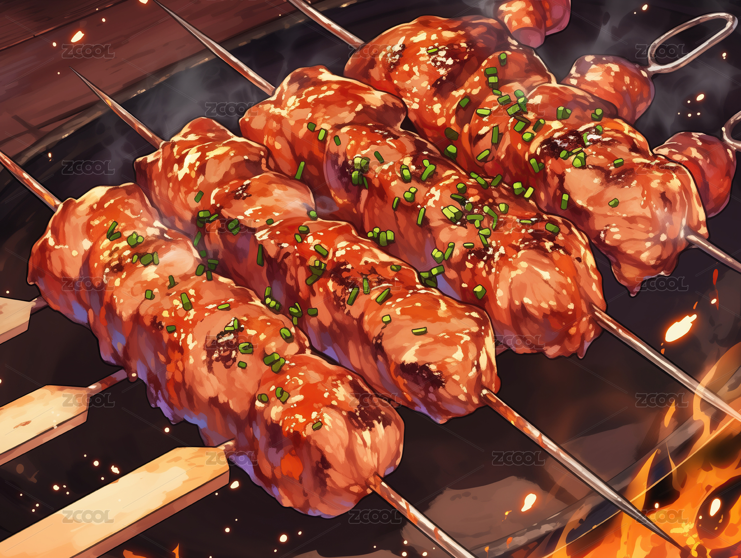 复古日漫风插画烤串