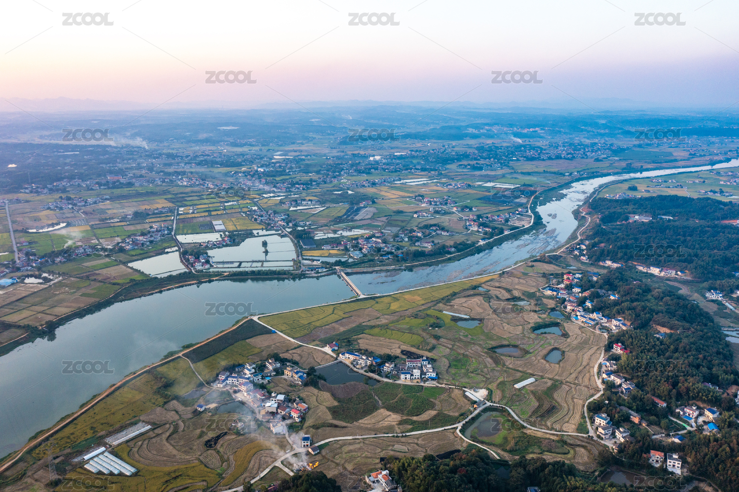 沩水,长沙,航拍,日落,夕阳,秋收,稻谷,稻田,丰收,宁乡