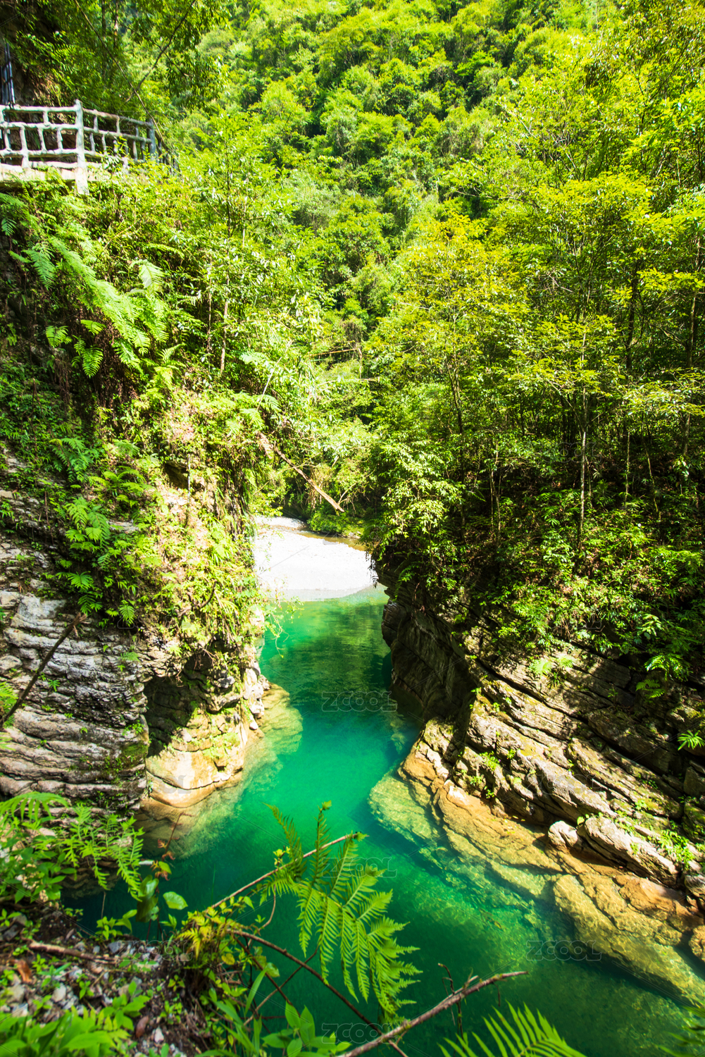 湖北,恩施,鹤峰县,屏山大峡谷,峡谷,河流,湛蓝,山谷,夏天,山崖