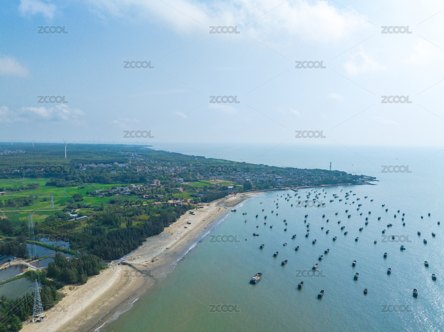 航拍海南琼海潭门沙滩椰林海滩海岸线风光
