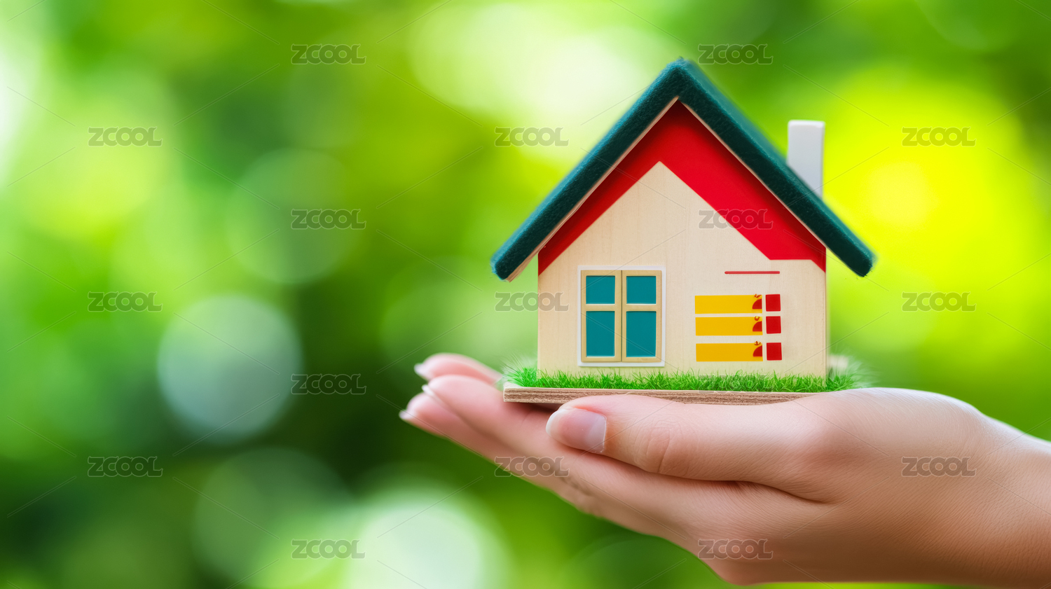 一只手托着虚拟的谢克尔钞票和另一只手托着虚拟的小房子进行交易