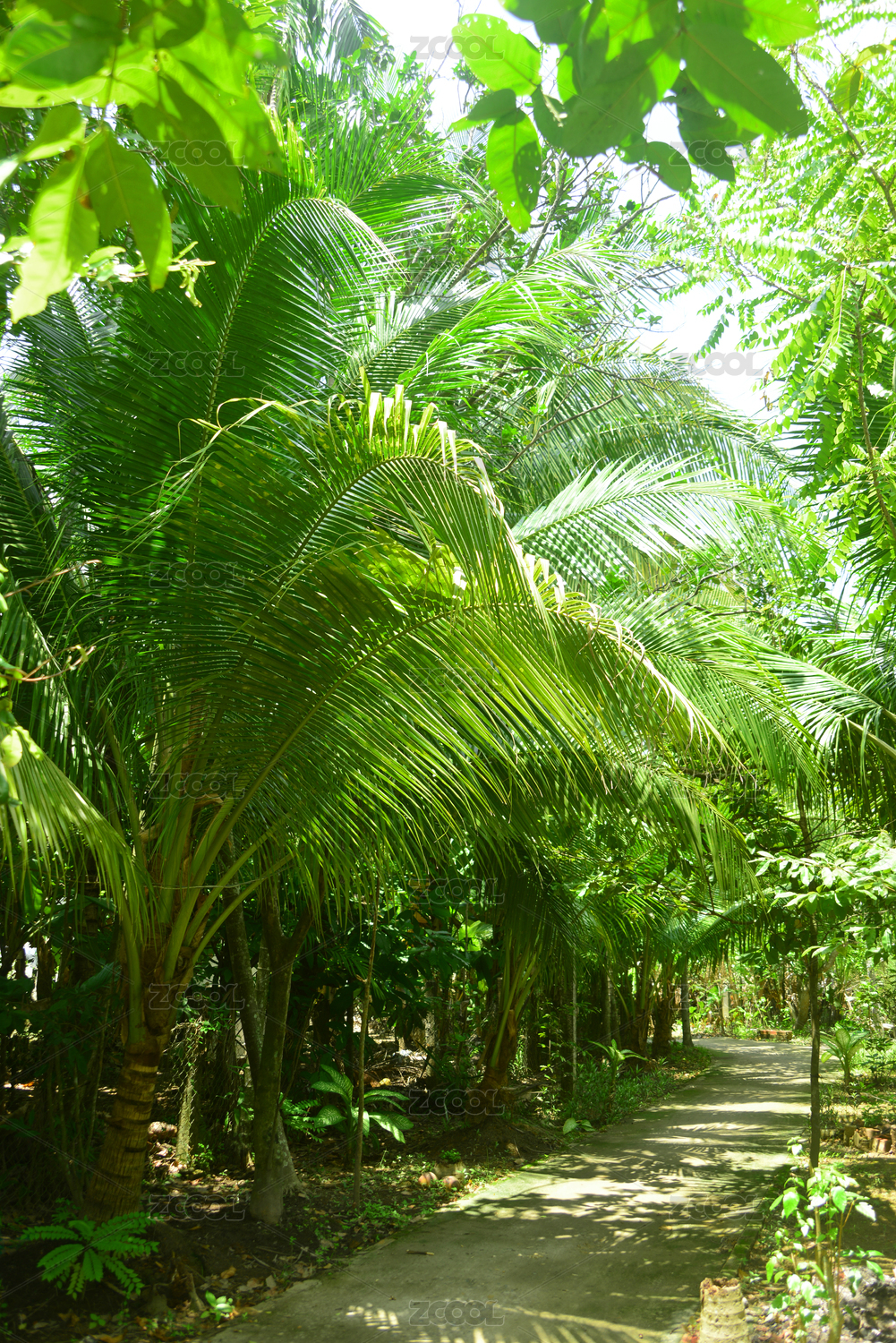 越南,九龙江,乡间,乡村,道路,小路,棕榈树,树林,果树,湄公河