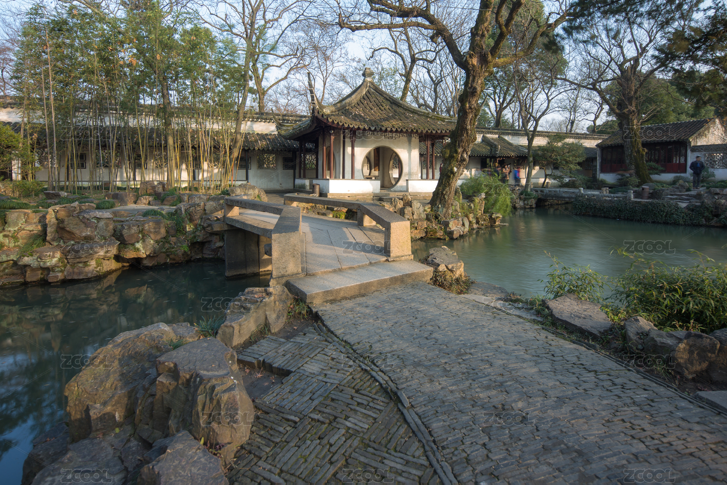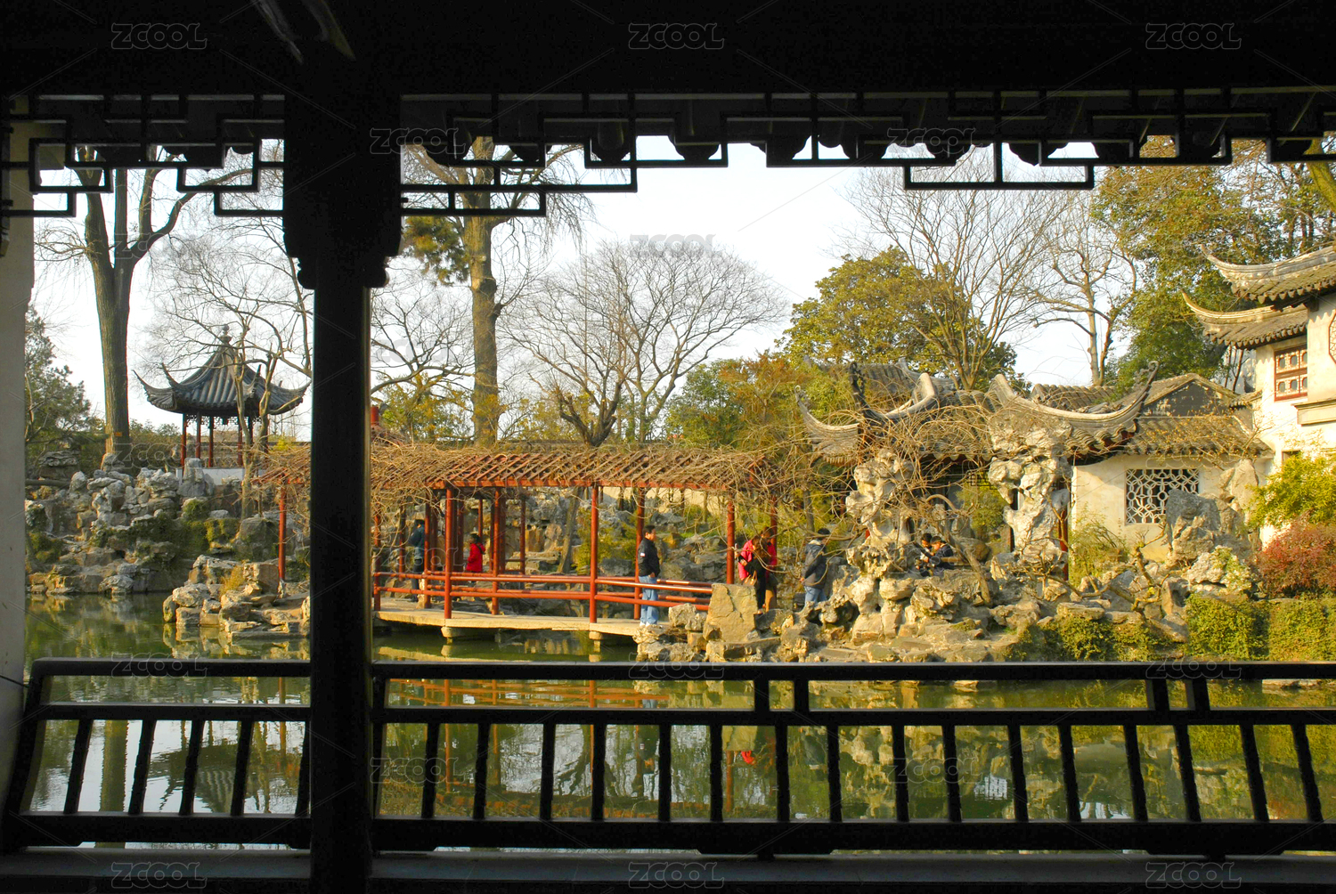 扬州瘦西湖风景区冬季的内部景色